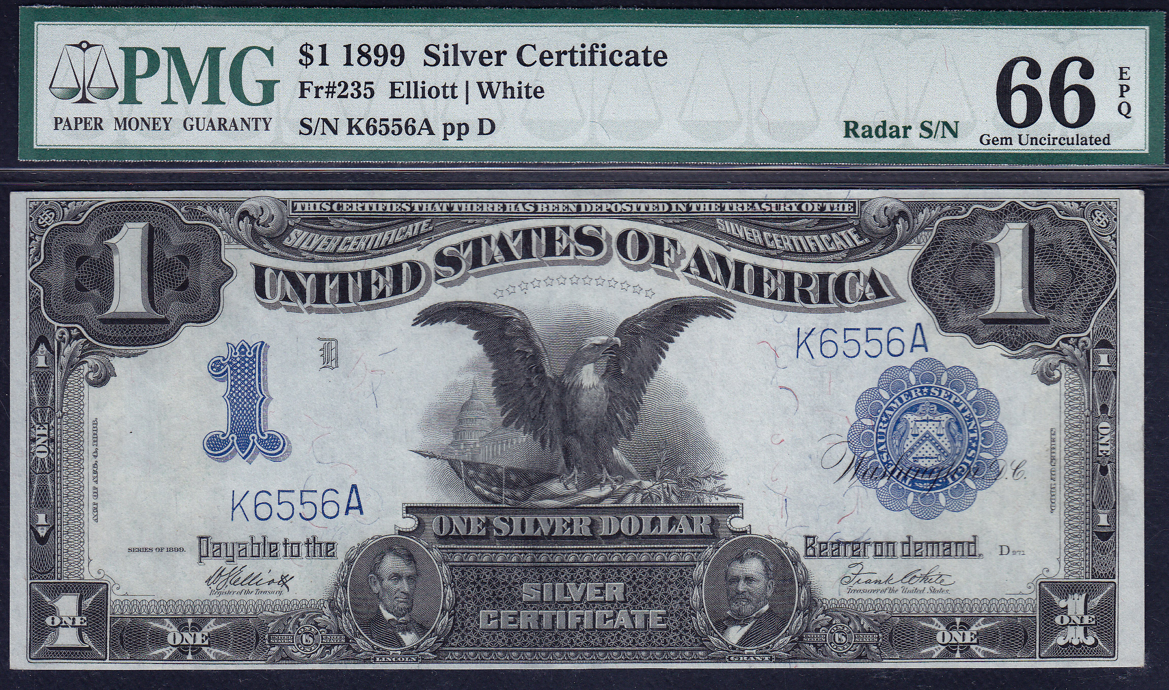 Fr.-235 1899 $1 Black Eagle PMG-66EPQ RADAR Serial # K6556A