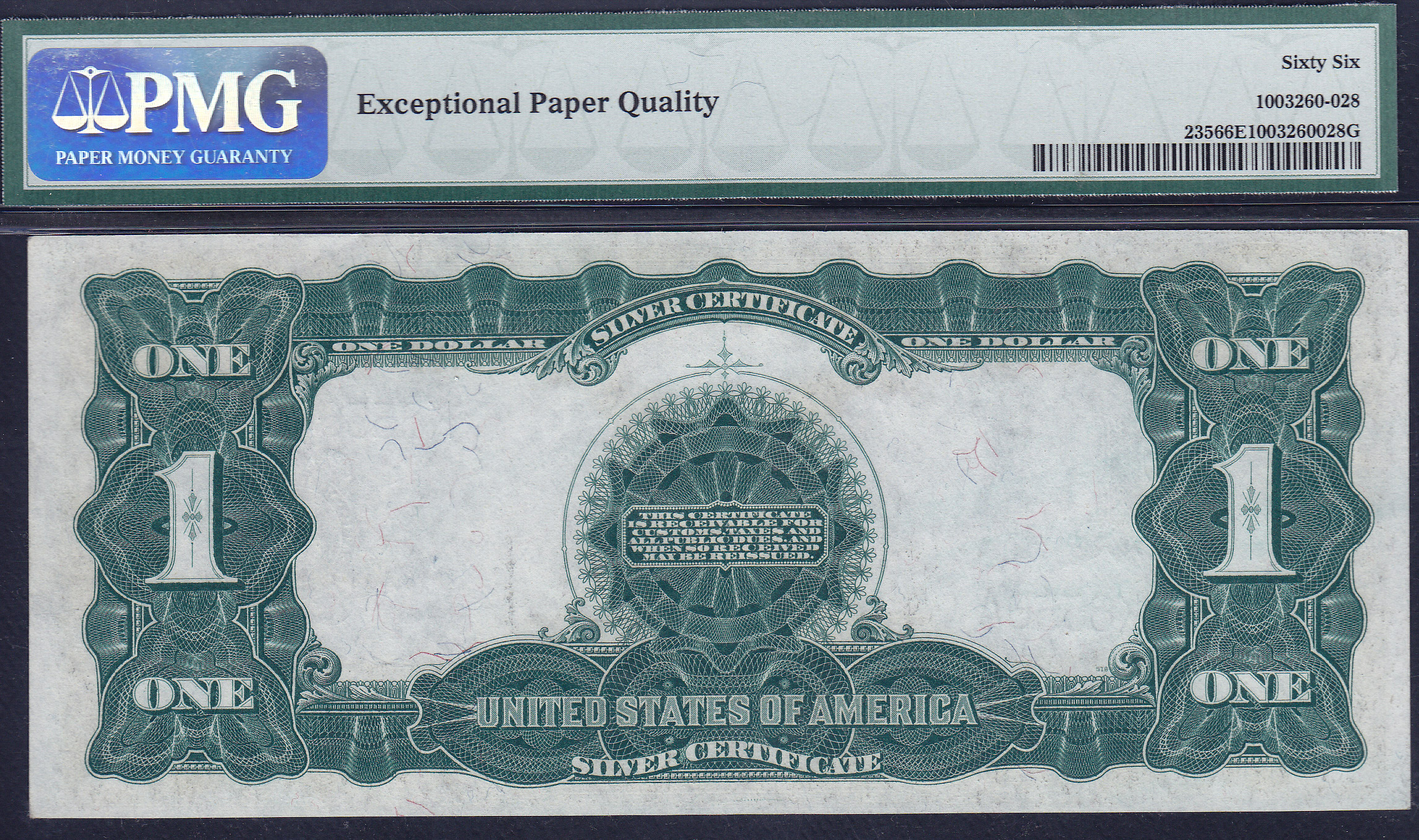 WHAT CAN YOU SAY? This is one of 5 1899 $1 Black Eagle RADARS that are being listed. They were originally known as "Presentation Notes". I acquired the set of 5 notes in June of 2003 in a private sale. None of the 5 notes have ever been circulated or offered for sale in auction or public. They all have been in private hands since the day they were printed and then Presented. I have never seen or found anywhere a 4-dight radar on a Black Eagle in GEM condition in any auction or dealers table or anyones website. These 5 1899 $1 Black Eagles RADARS have been in my private collection and now its time for someone else to enjoy them as much as I have over the past years.