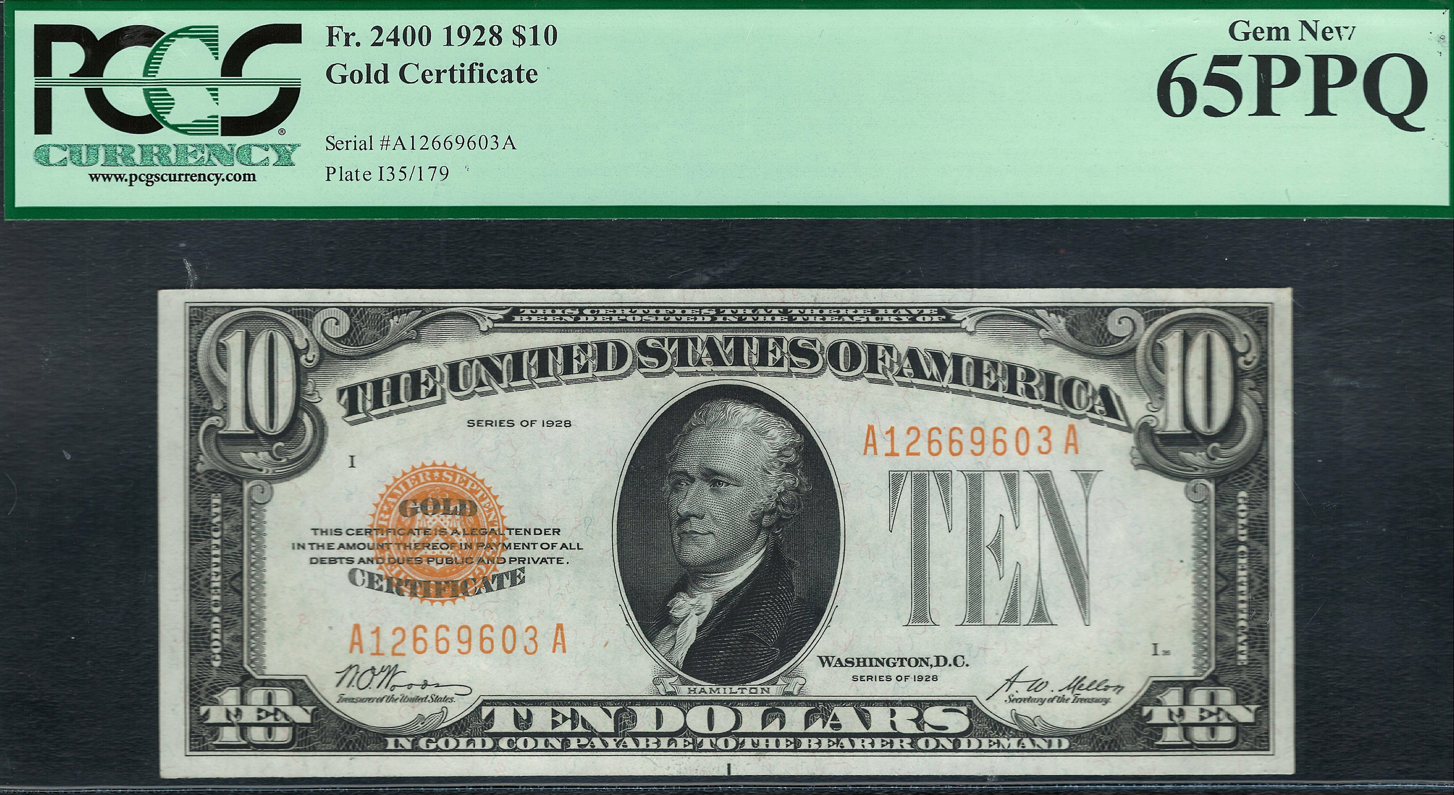 Fr.-2400 1928 $10 Gold Certificate Ser. A12669603A PCGS-65PPQ