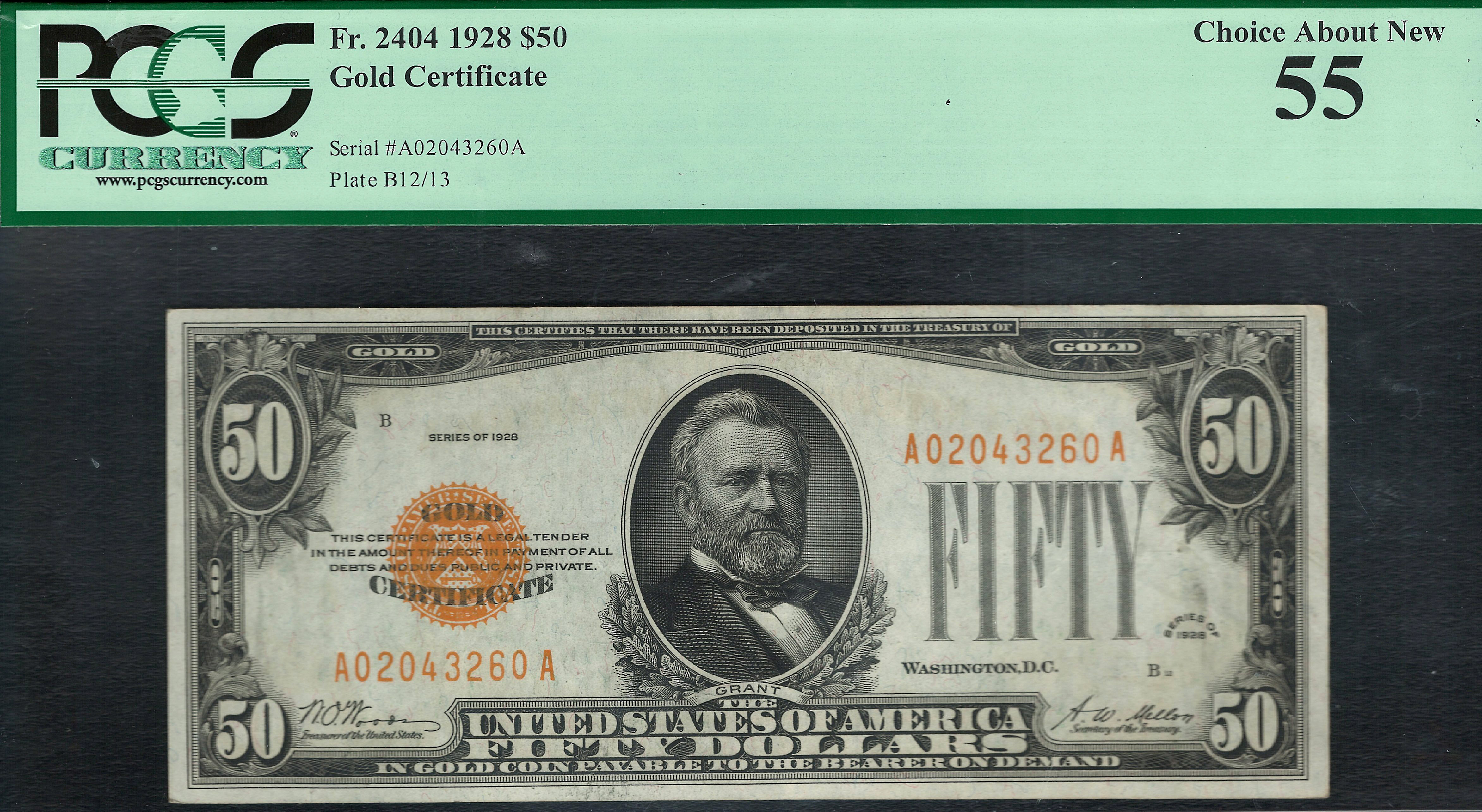 Fr.-2404 1928 $50 Gold Certificate Ser. A0243260A PCGS-55