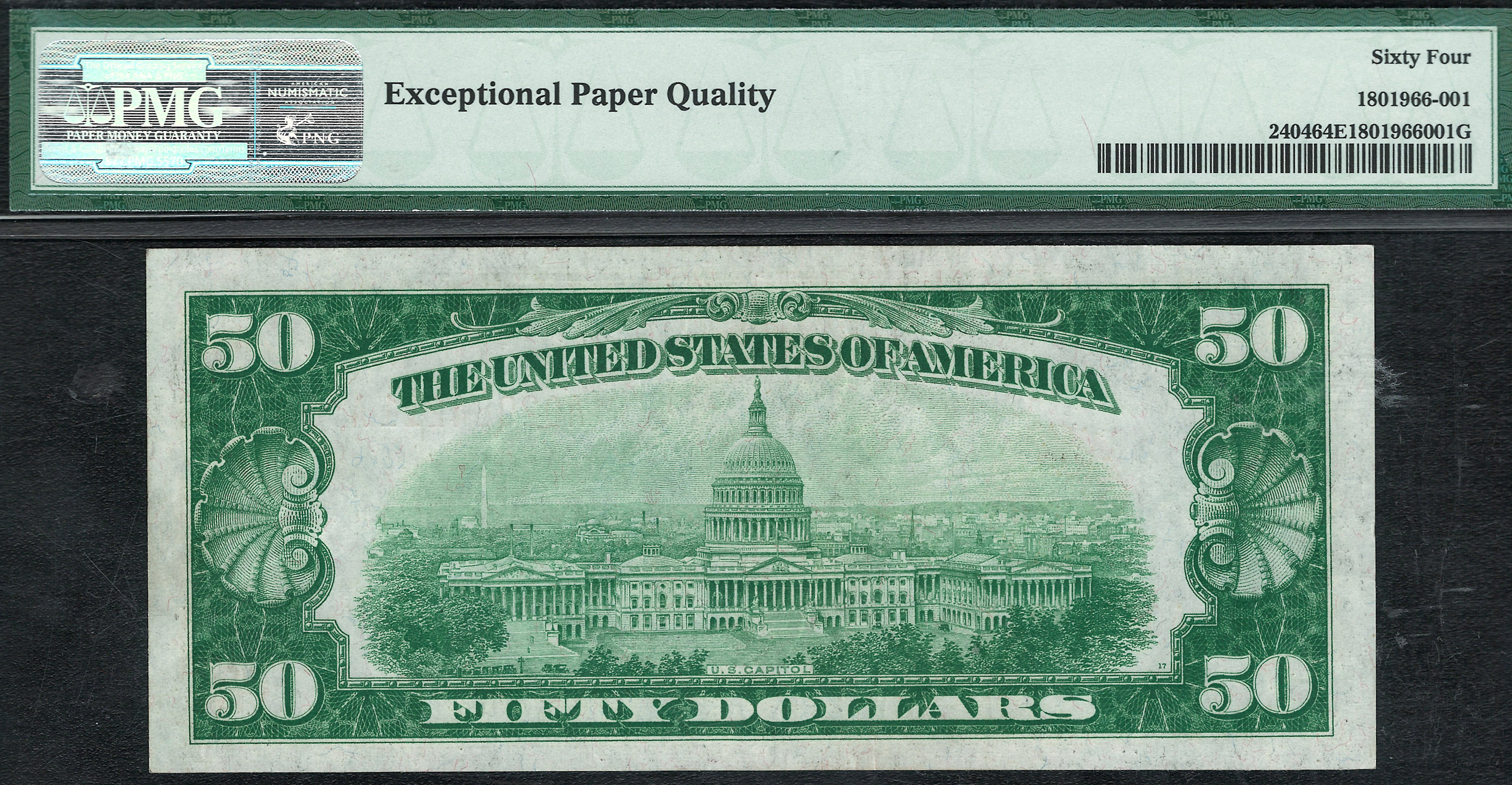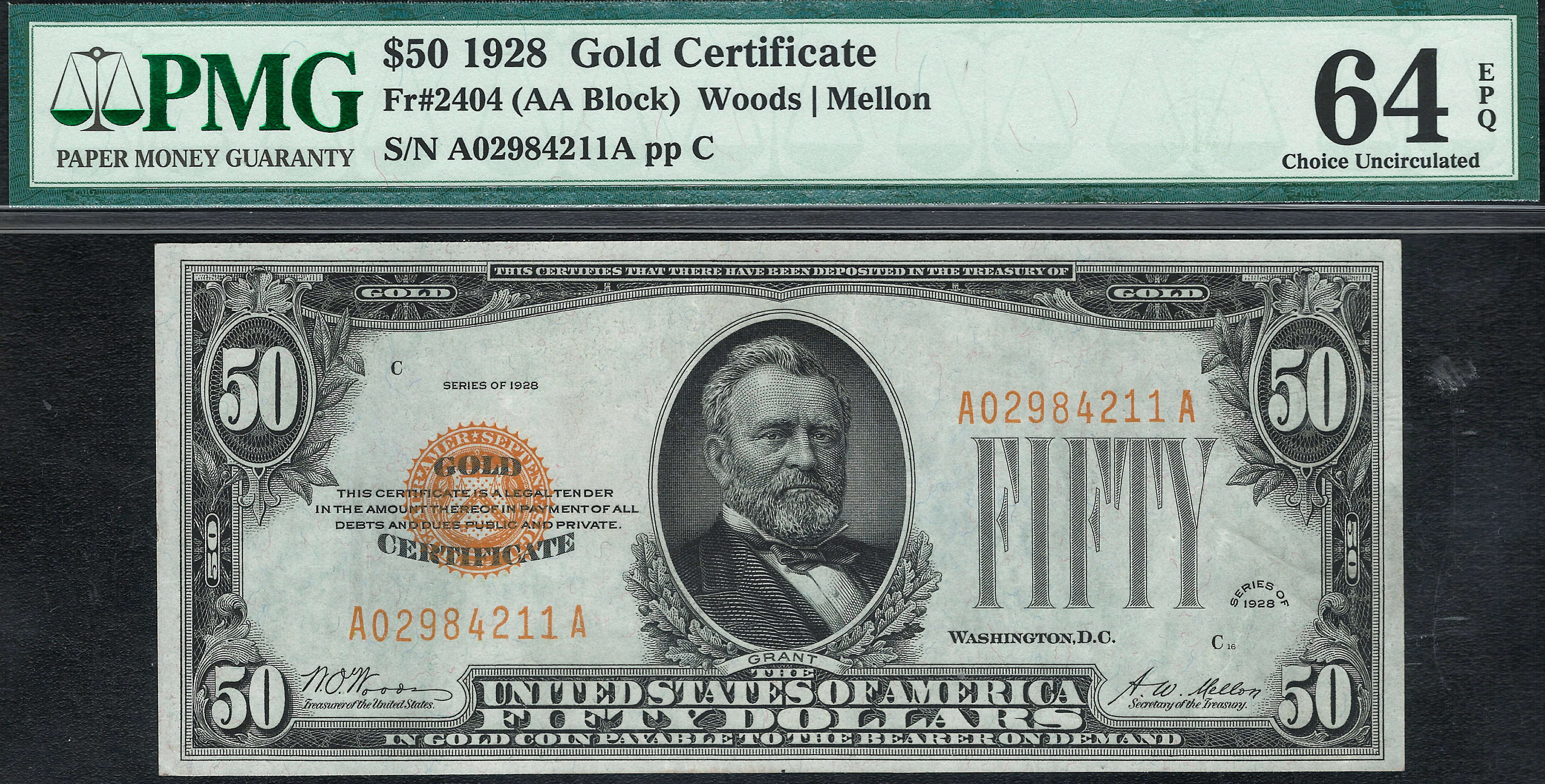 Fr.-2404 This is a very nice example of the 1928 $50 Gold Certificate in a PMG-64PPQ holder. Of all the