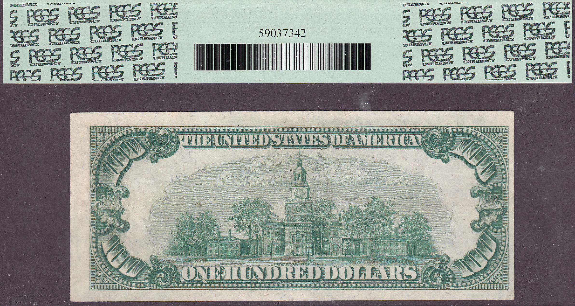 PMG has graded a mere three of thse $100 Gold Star notes with the highest grade being a PMG-50. The last record of one selling was earlier this year in a PCGS-20 with noted repairs that sold for almost $20,000. I've only owned one other and it was in Fine condition with a small edge repair. I sold it four years ago for $12,500. PCGS has notated minor repair on the holder, but no one can find the alleged repair, including me. I called PCGS to find out where it is, so far no reply. I do not believe there is any repair at all. I am going to resubmit it. However it really does not matter. Check it out on the large scans, it is absolutely stunning without the wear and tear. There are no rips, tears or writting that I can see. the burnt-orange colors are very bright with no fading as is so common on these notes. For additional photos or any questions you can reach me at 214-769-9936.This 1928 $100 Gold certificate Star currently resides in the Jhon E Cash Collection.