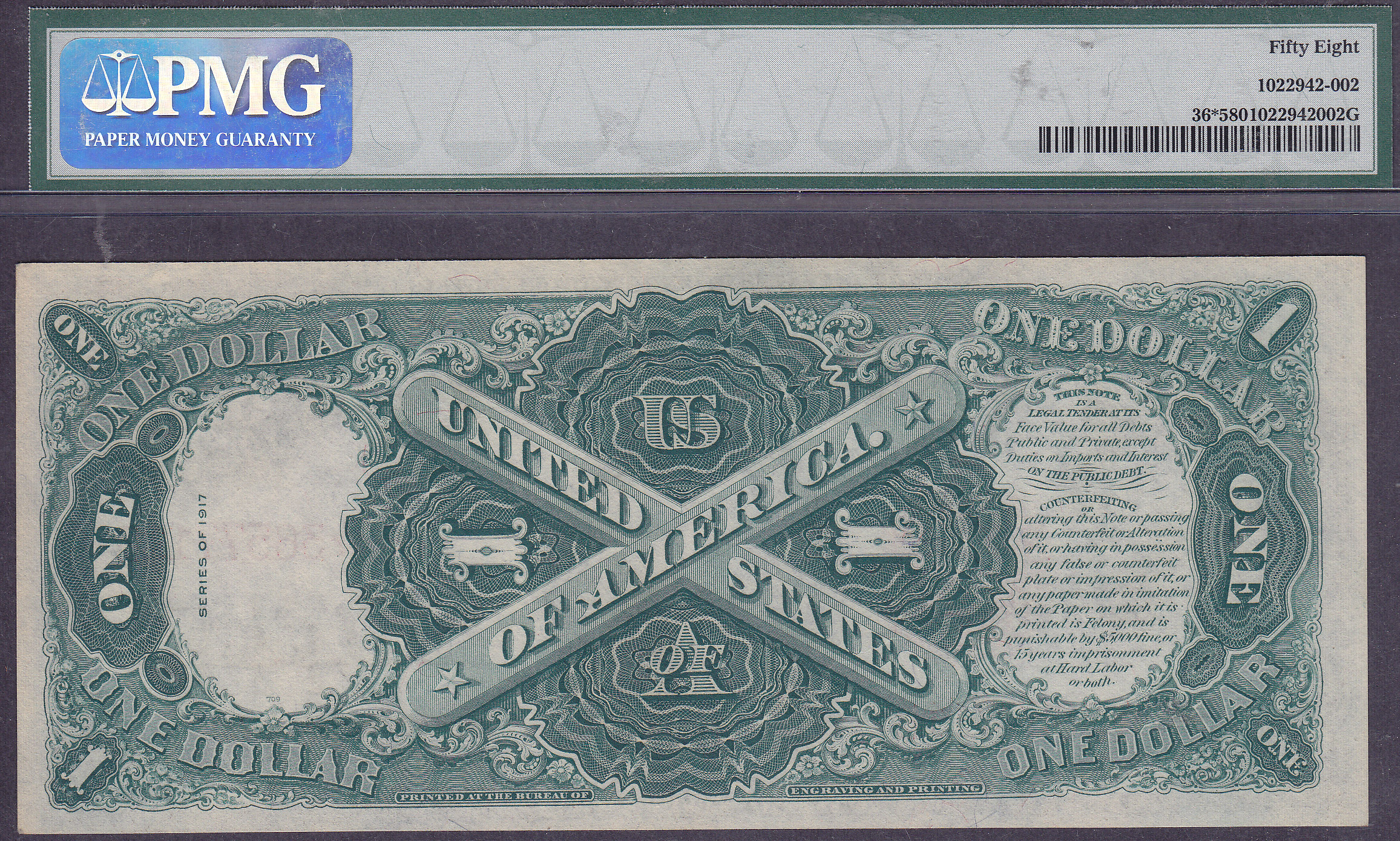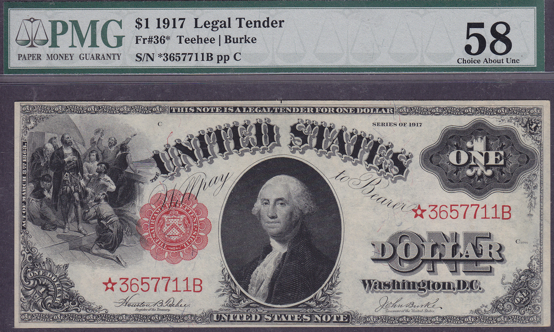 Fr.-36* 1917 $1 Legal Tender STAR *3657711B PMG AU-58