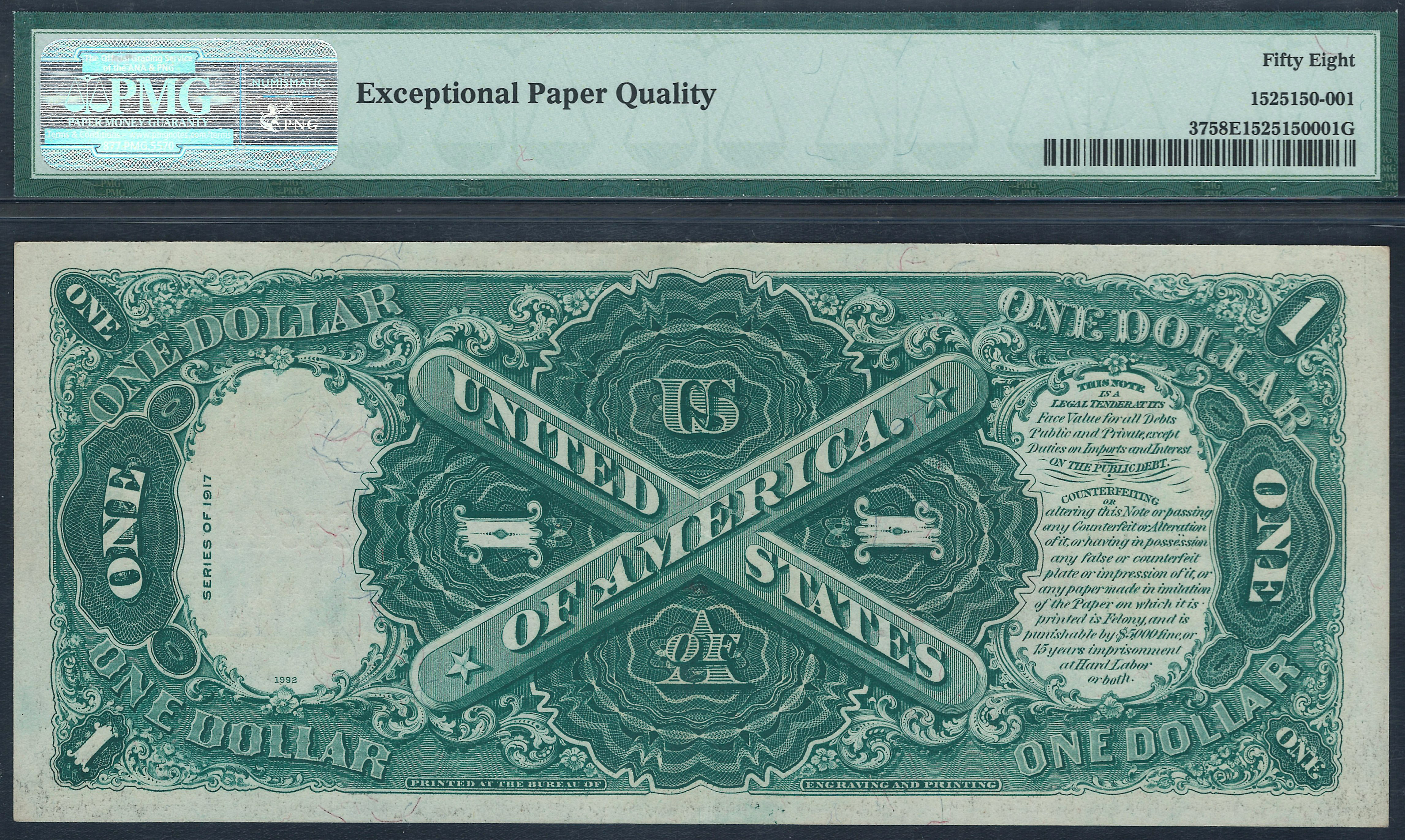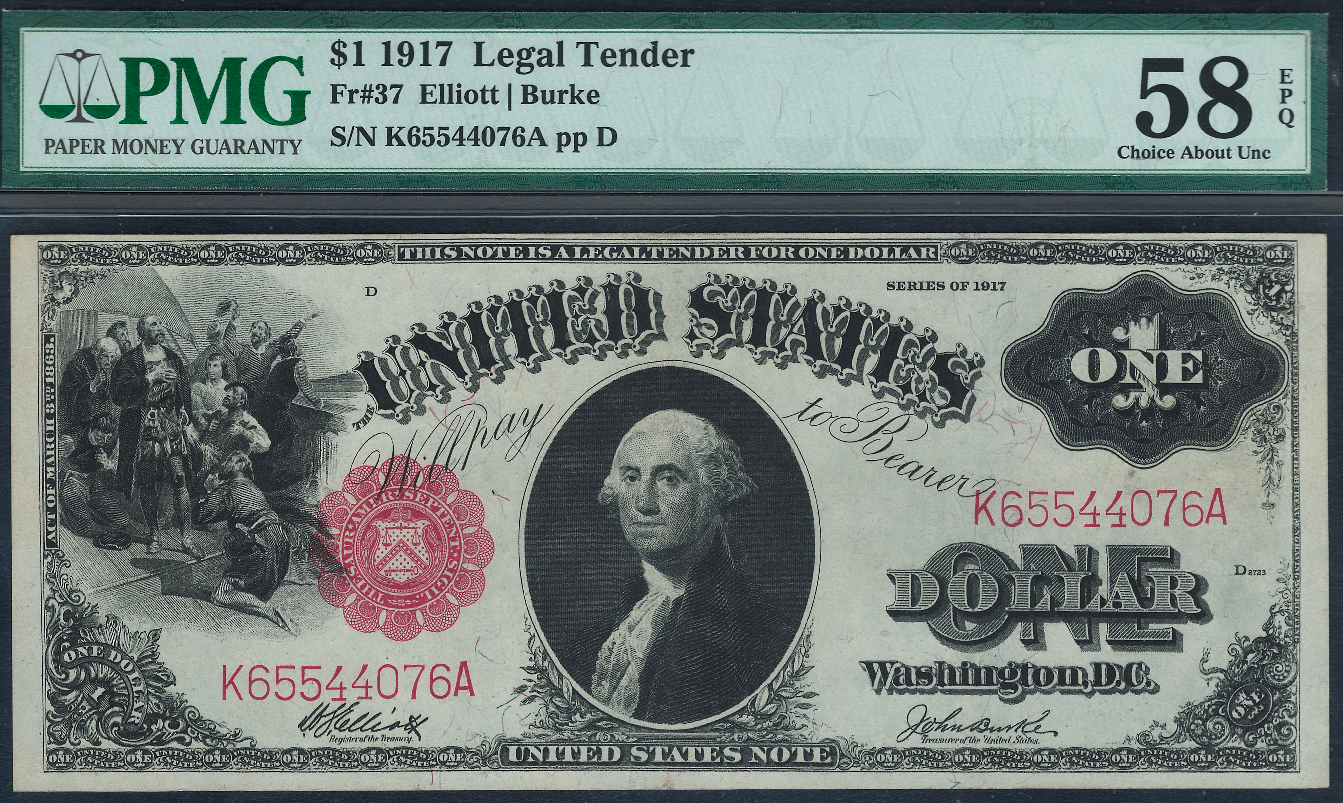 Fr.-37 1917 $1 Legal Tender Ser. K65544076A PMG58 EPQ