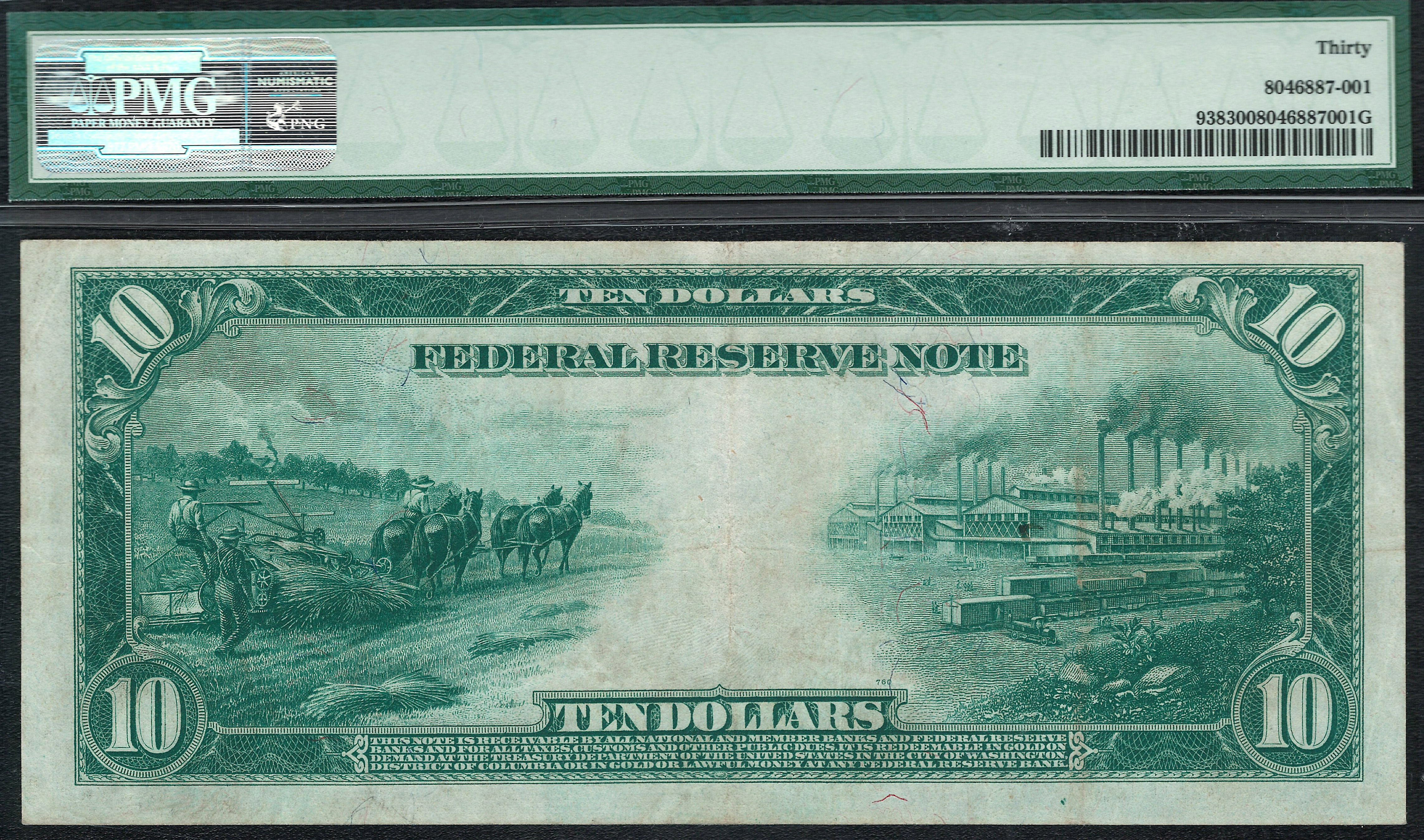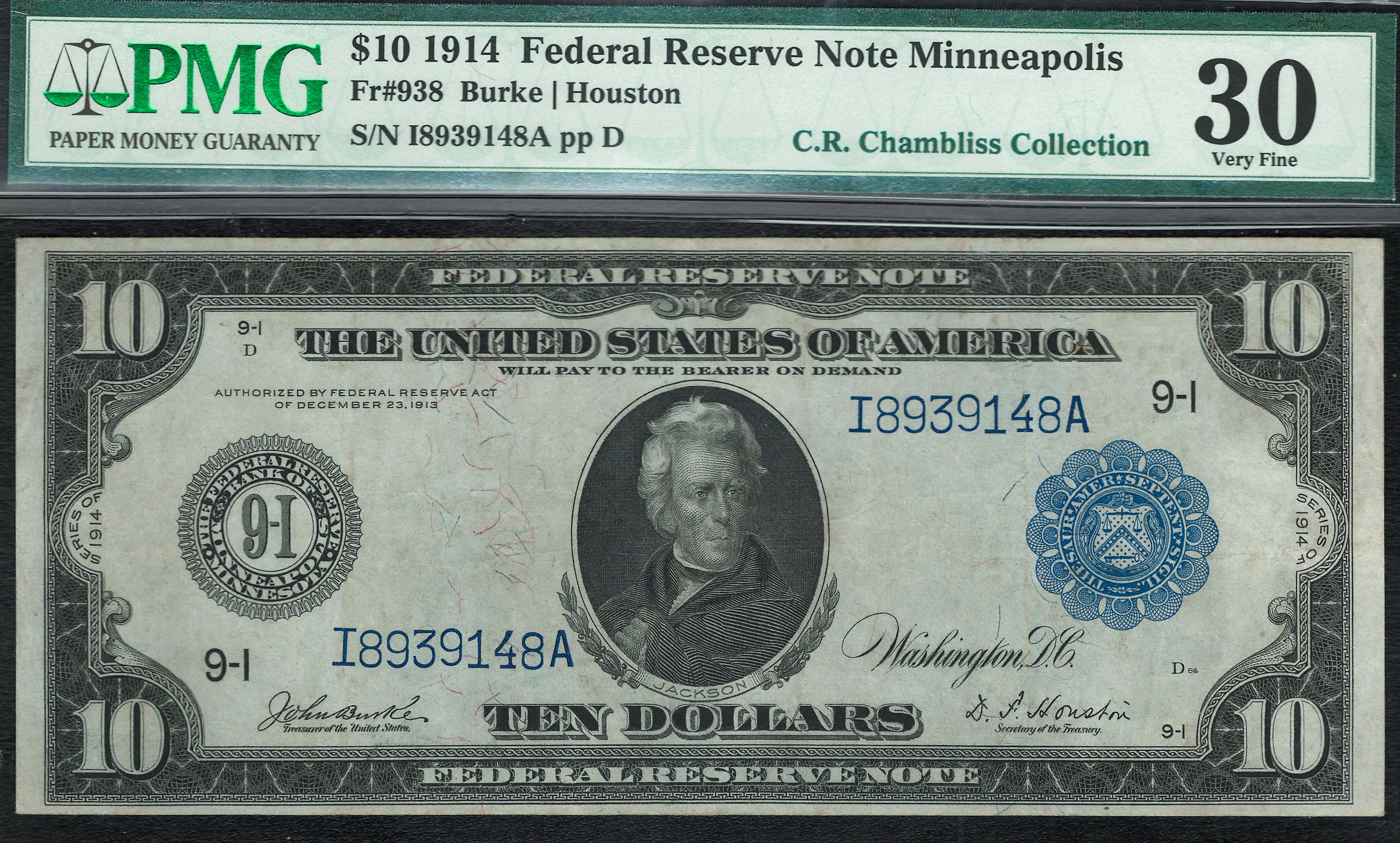 Fr.-938 1914 $10 Minneapolis FRN (Blue Seal)Ser. I8939148A PMG 30