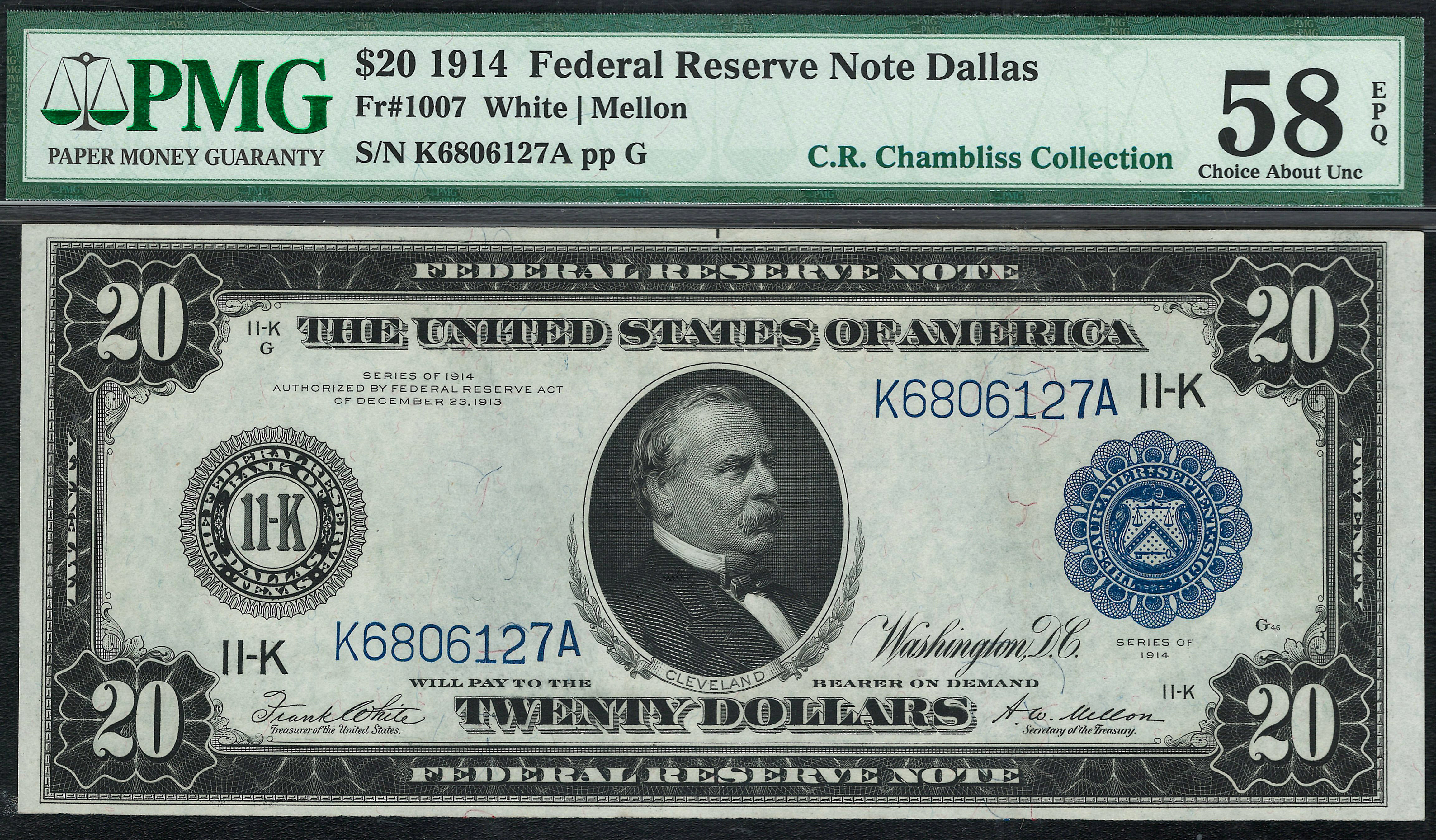 Fr.-1007 1914 $20 Dallas FRN (Blue Seal) Ser. K6806127A PMG 58 EPQ