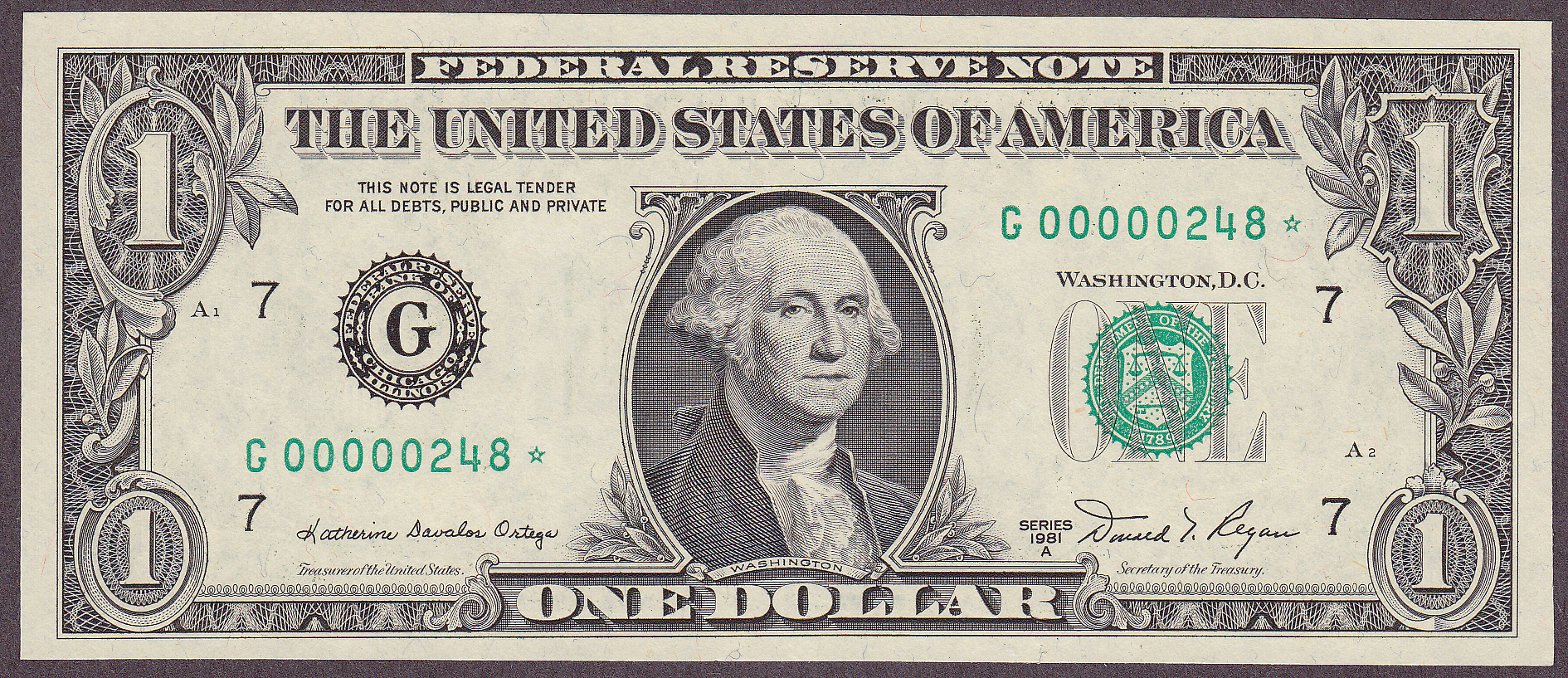 Fr.-1134* 1981-A $1 Chicago FRN Ser. G00000248* Raw