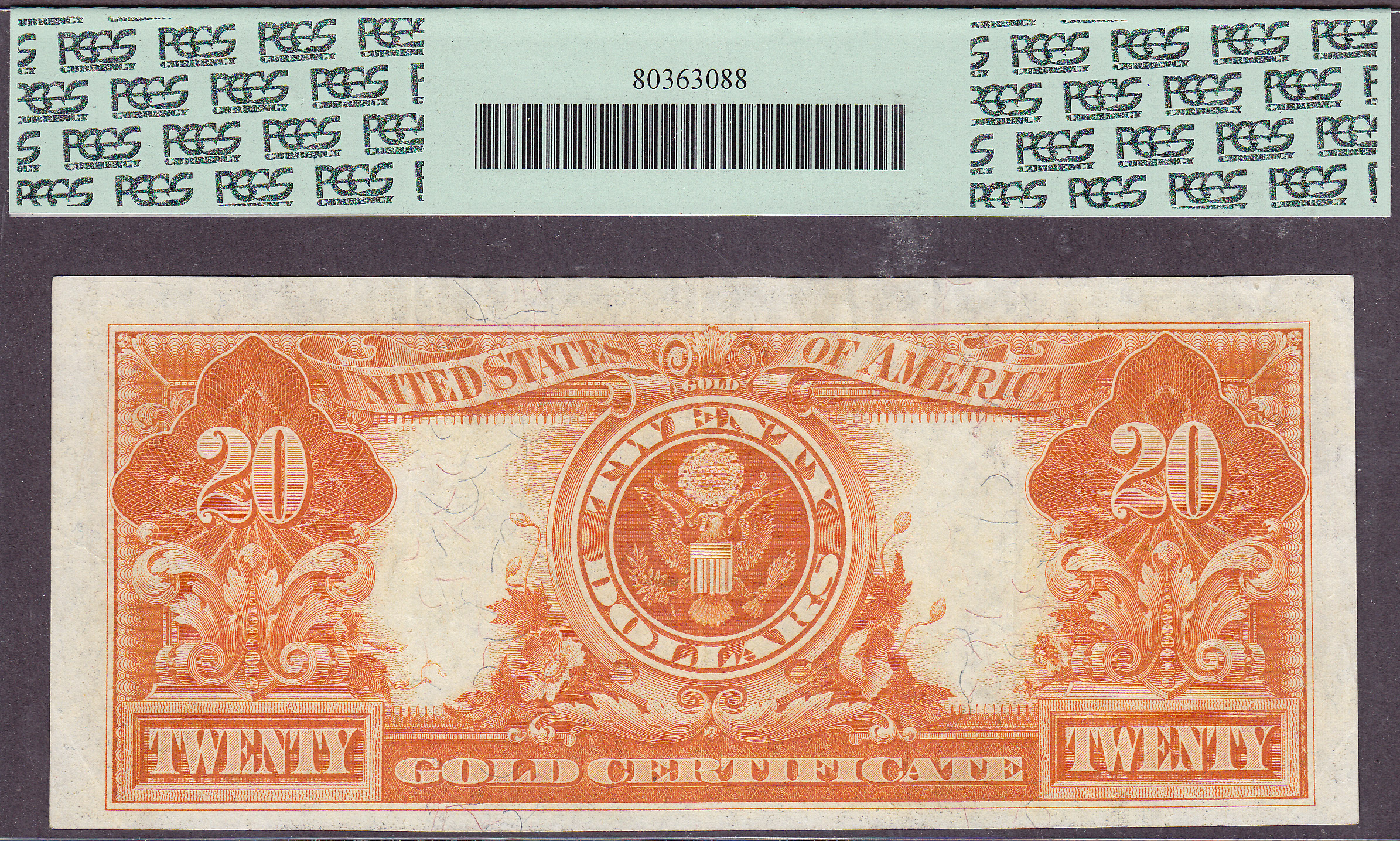 This 1906 $20 Gold Certificate is a one year issue and to top that off it was only issued in the $20 denomination. This is the only one I have owned in quite some time. I bought this from one of my clients at the Long Beach show. As you can see from the scans the burnt-orange gold color inks is as vibrant as the day it was printed. Decent white margins border this stunning example of 1906 gold certificate. You don't come across this nice of a Extra Fine note often. the serial number is H15421809 and is in a PCGS-40 holder.