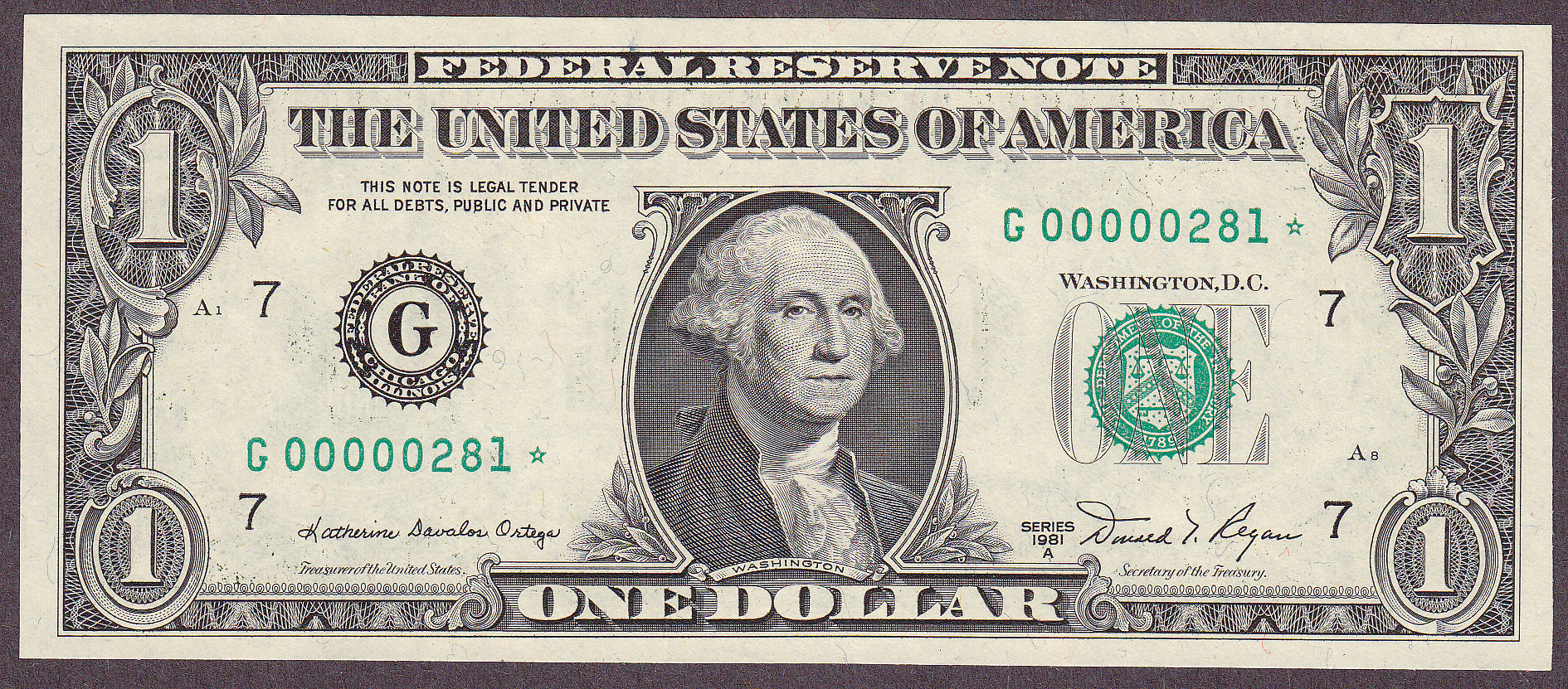 Fr.-1189* 1981-A $1 Chicago FRN Ser. G00000281* Raw
