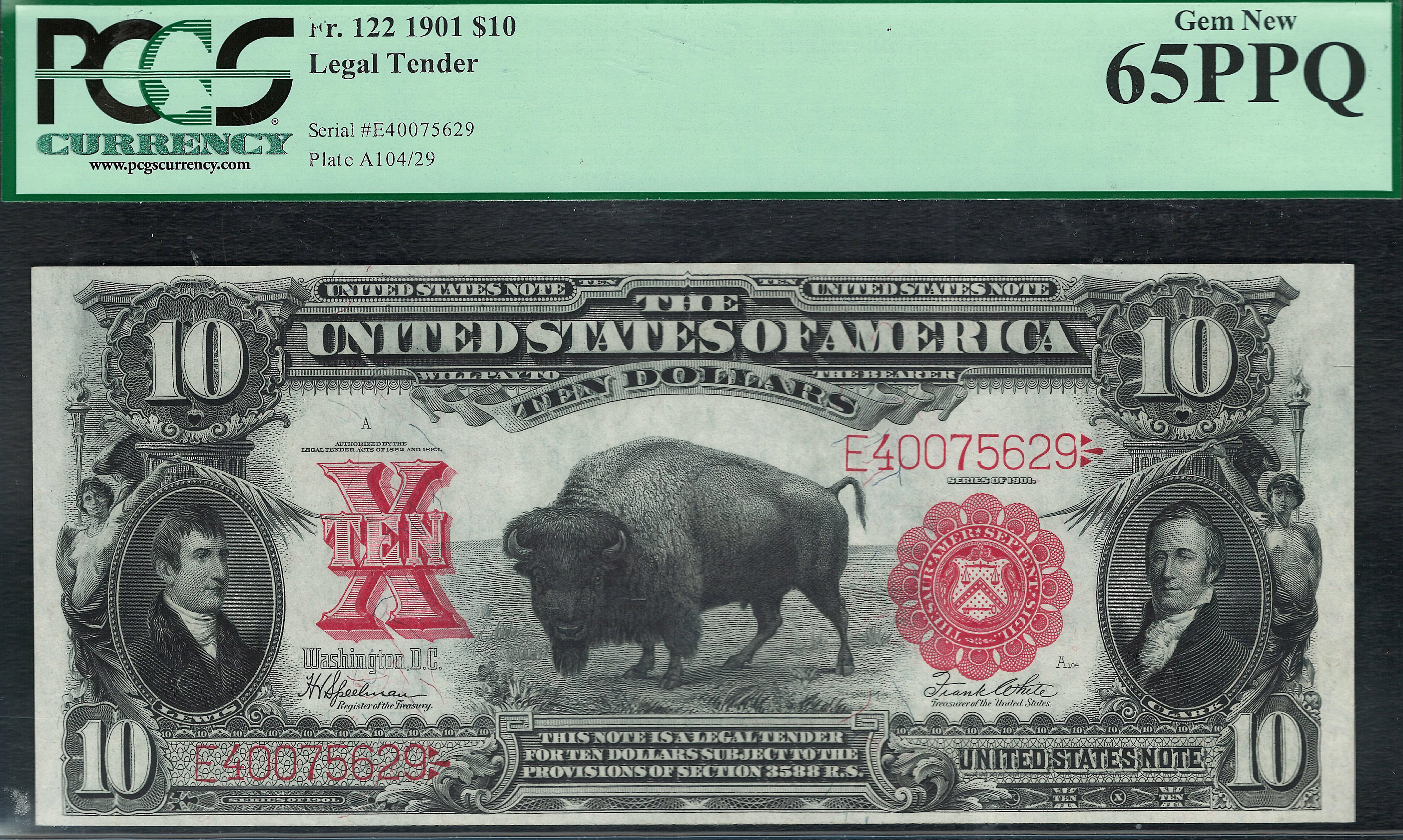 Fr.-122 1901 $10 Legal Tender (Bison) Ser. E40075629 PCGS-65PPQ