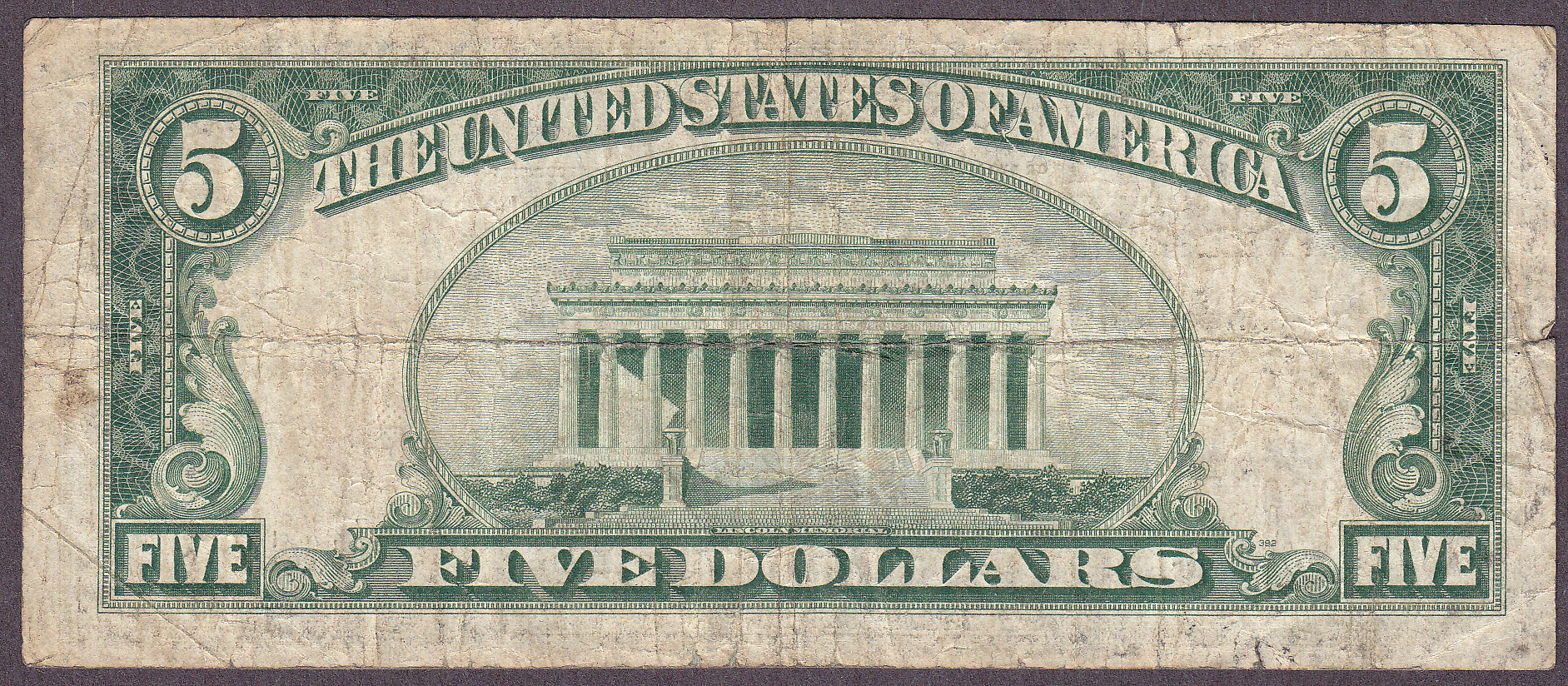 There were 48,000 printed and 36 known of these 1929 $5 FRBN stars from Kansas City. This note is in fine condition with a edge nick on the front left face. No other distractions are visable. A nice mid-grade FRBN star for a very low price. The serial number is J00027678*