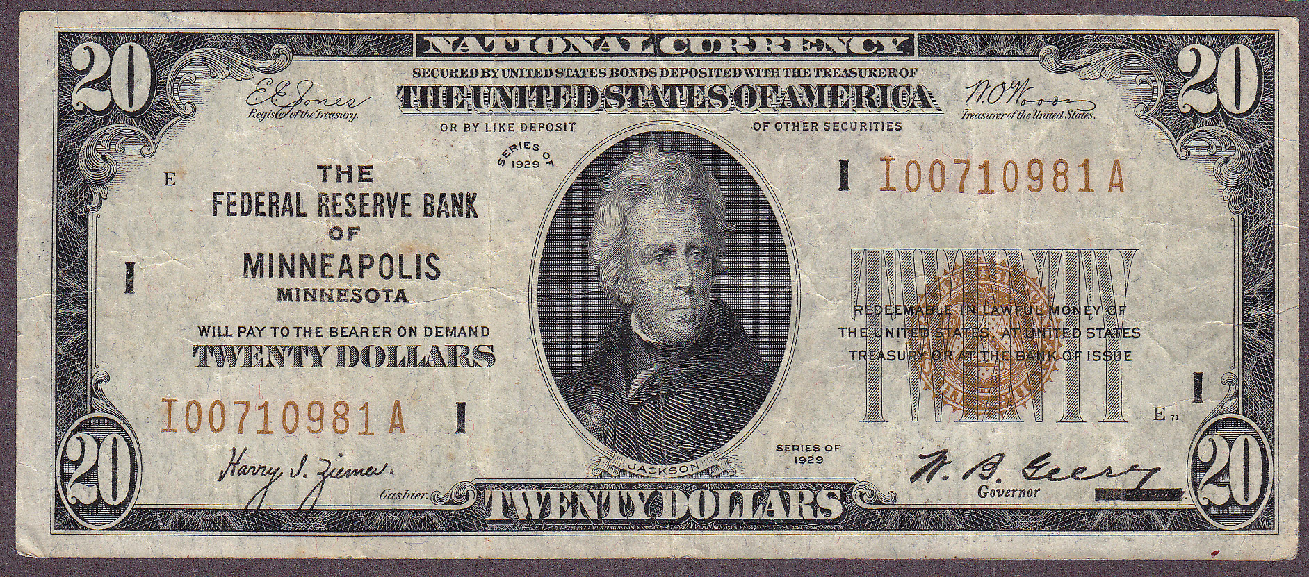 Fr.-1870 1929 $20 Minneapolis FRBN Ser. I00710981A Raw