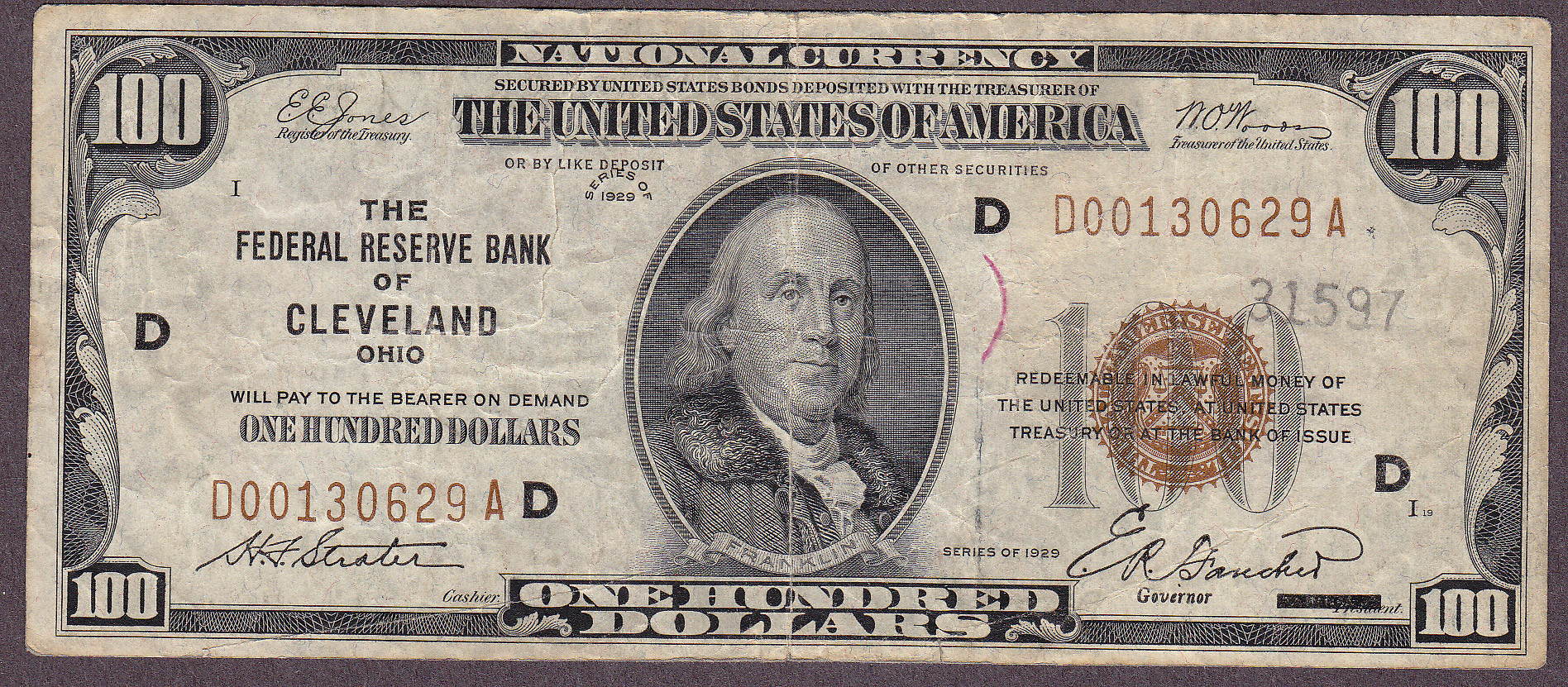 A very nice and collectiable 1929 $100 FRBN Note from the Cleaveland District. Check out the large scans. A solid VF.