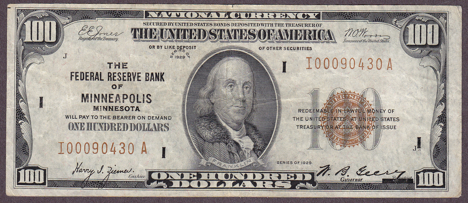 Fr.-1890 1929 $100 Minneapolis Ser. I00090430A Raw