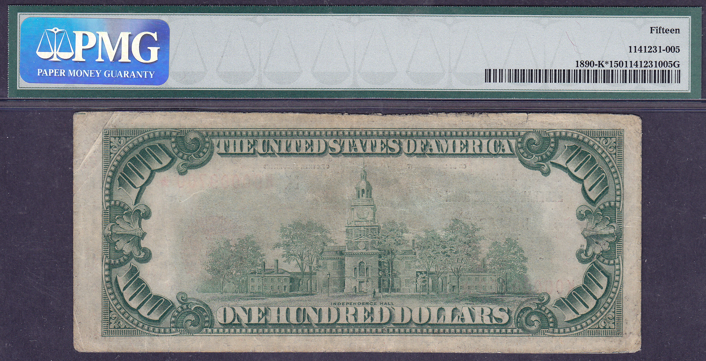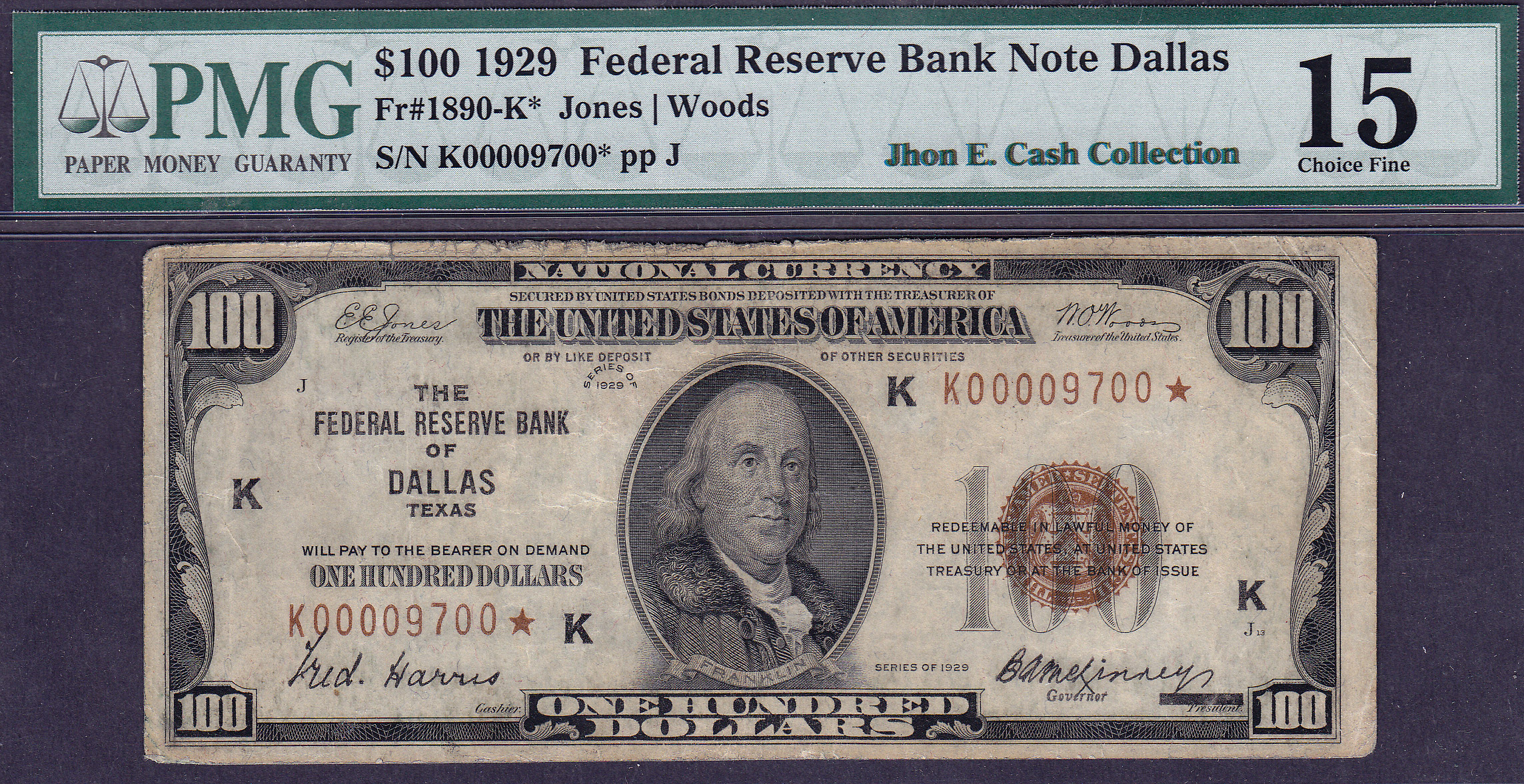 Fr.-1890K* 1929 $100 Dallas FRBN Star (2 known) Ser. # K00009700* PMG F-15