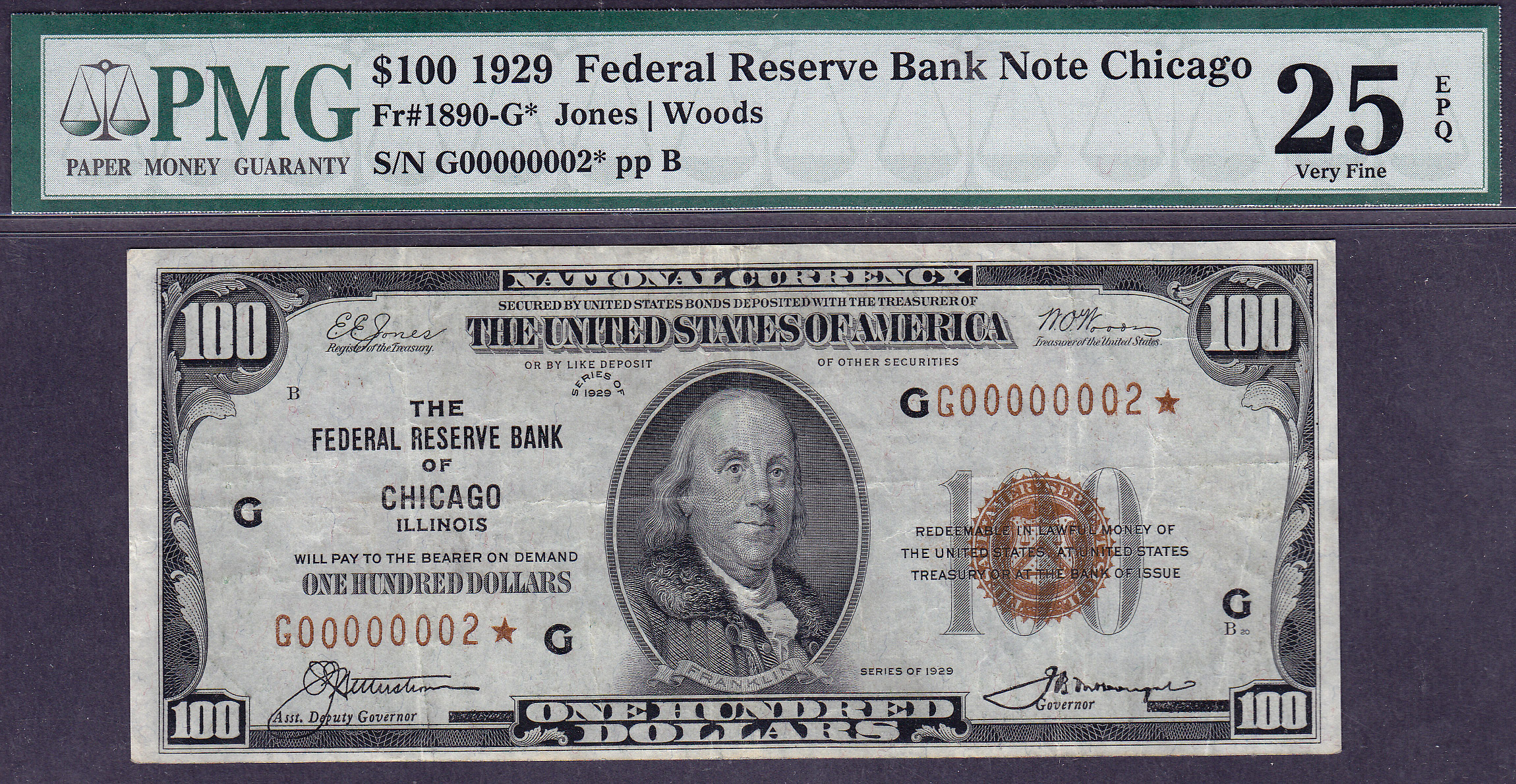 Fr.-1890G* 1929 $100 Chicago PMG VF-25 EPQ Serial # G00000002*