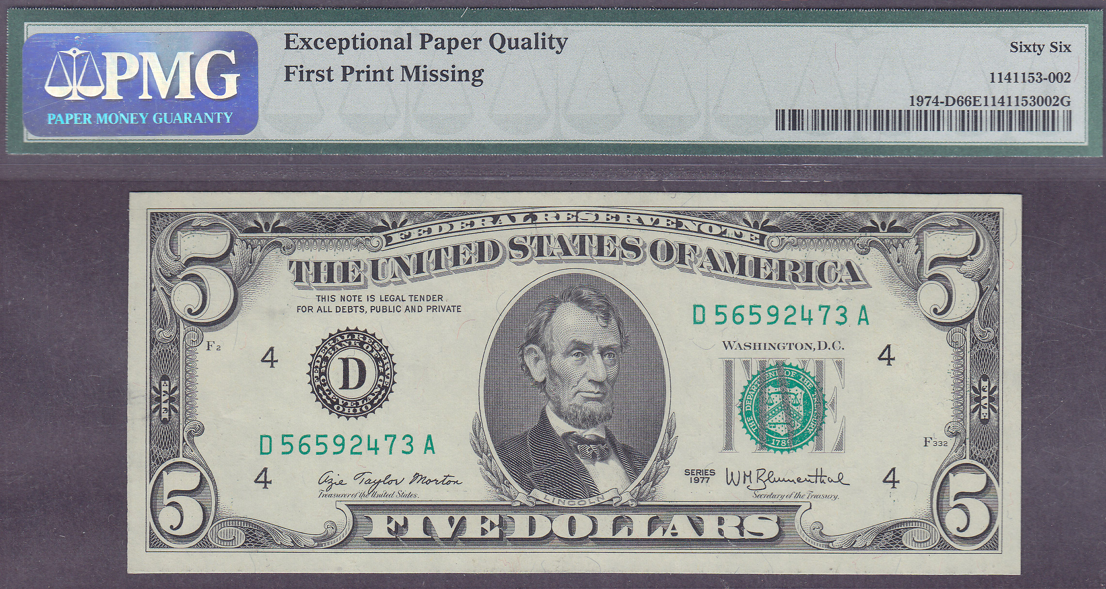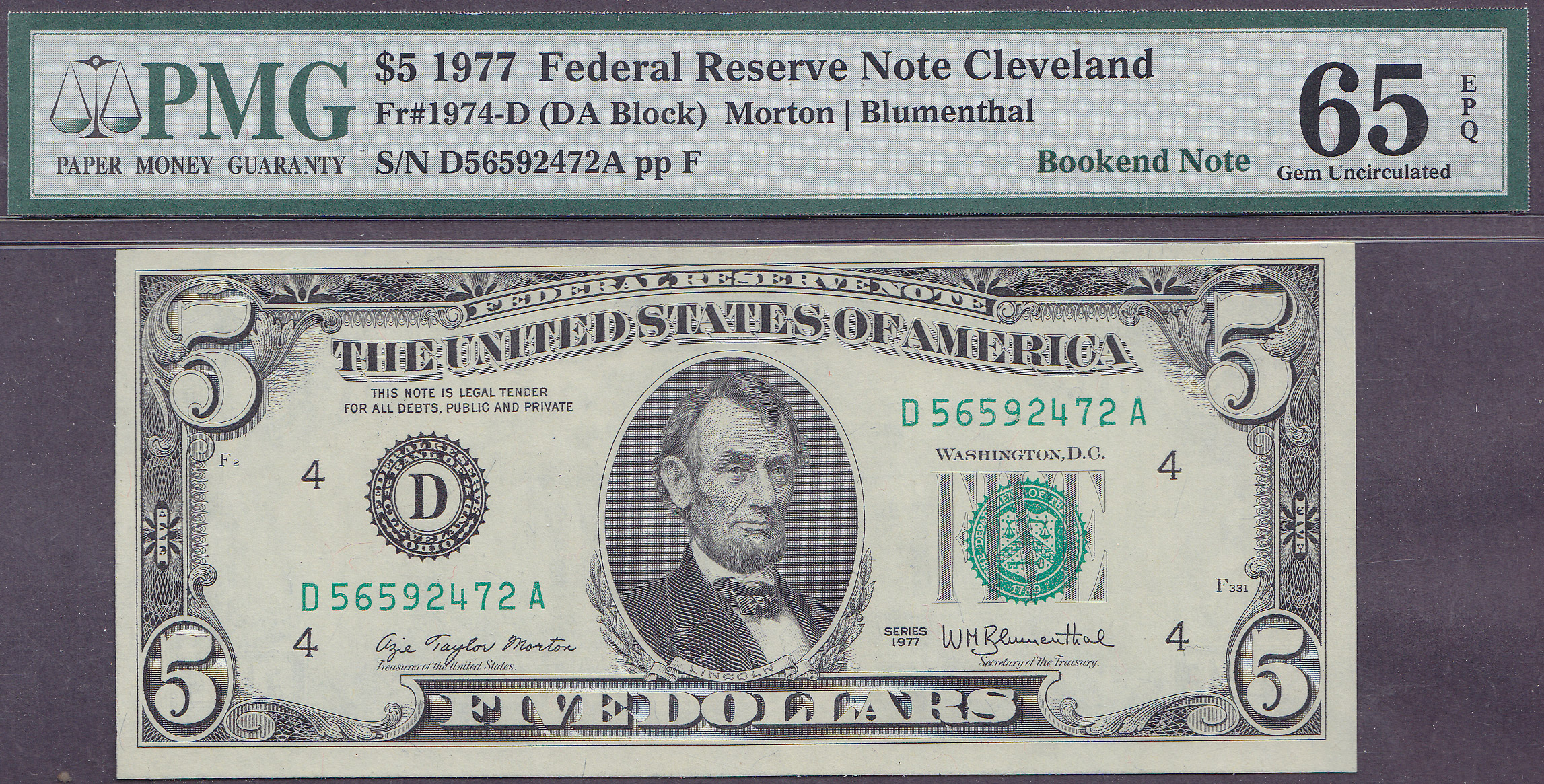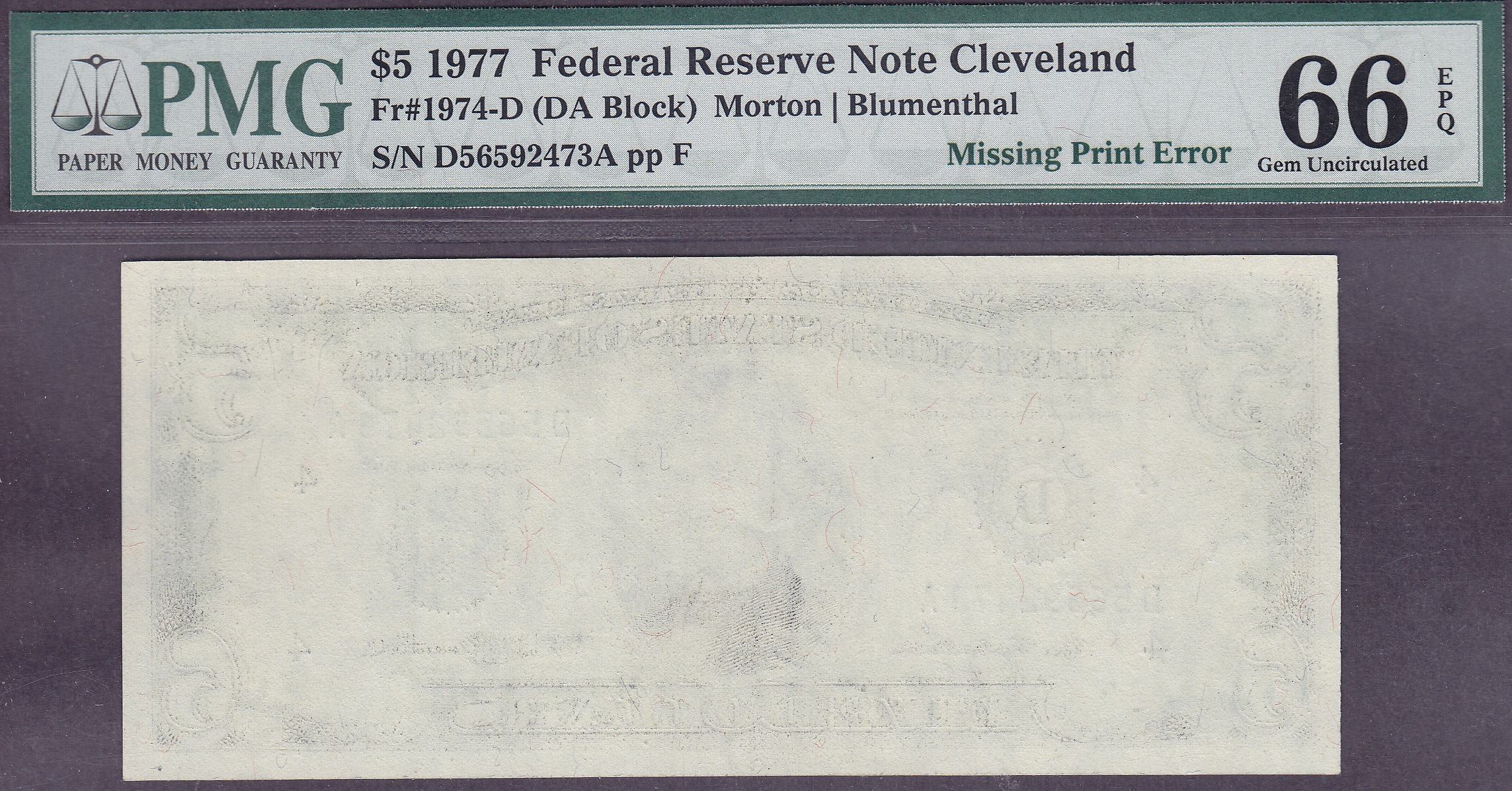 Fr.-1974 1977 $5 Clev.(3 set error note) D56592472-4A PMG 65/66/65 All EPQ