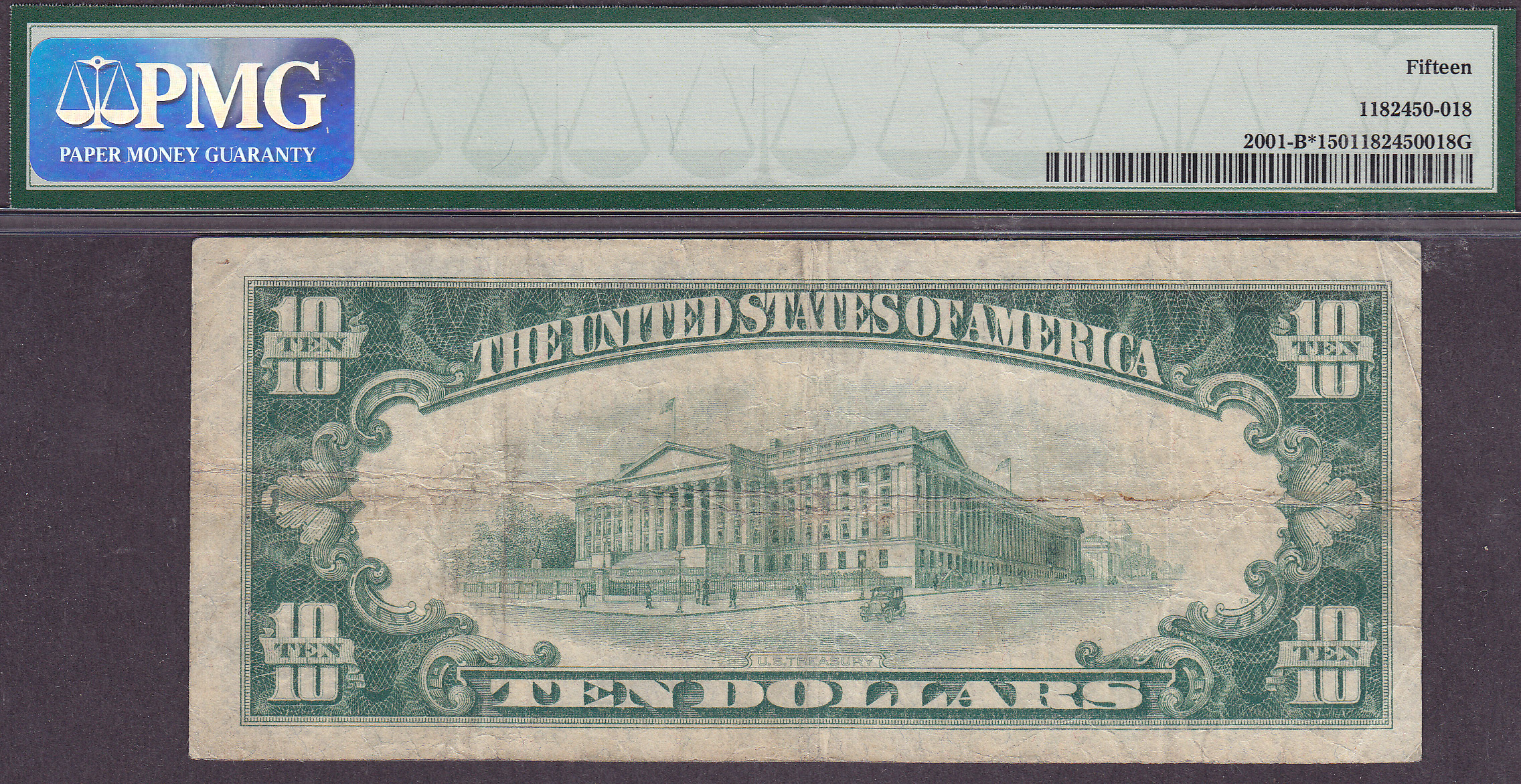 Here we have a very scarce 1928A New York star note. It is in a PMG F-15 holder. The 1928A series is much rarer than the 1928 series. There are no rips, tears or pinholes. The serial number is B00221145.
