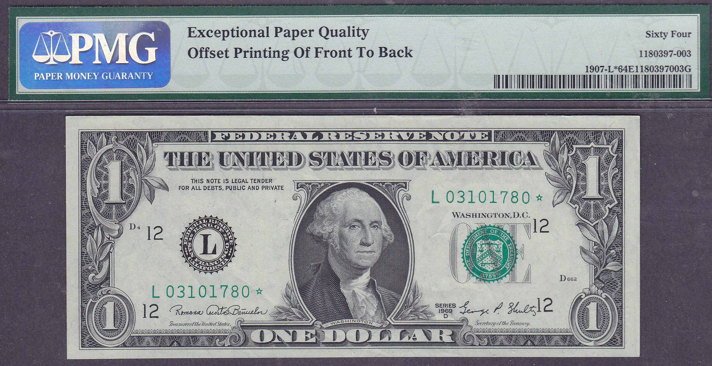 This is a 100% Face to Back Offset Error on a 1974 $20 FRN. What is so neat about this note is that 90% of all front to back (F2B) or back to front to back (F2B)errors are 50% offset or less. This is 100% Front to Back Offset error. Most of you advanced collectors already knew this anyway. I need to get this one graded by PMG...its that nice. I believe this would grade a PMG-65EPQ. It is NOW graded and it indeed come back A PMG-65EPQ.