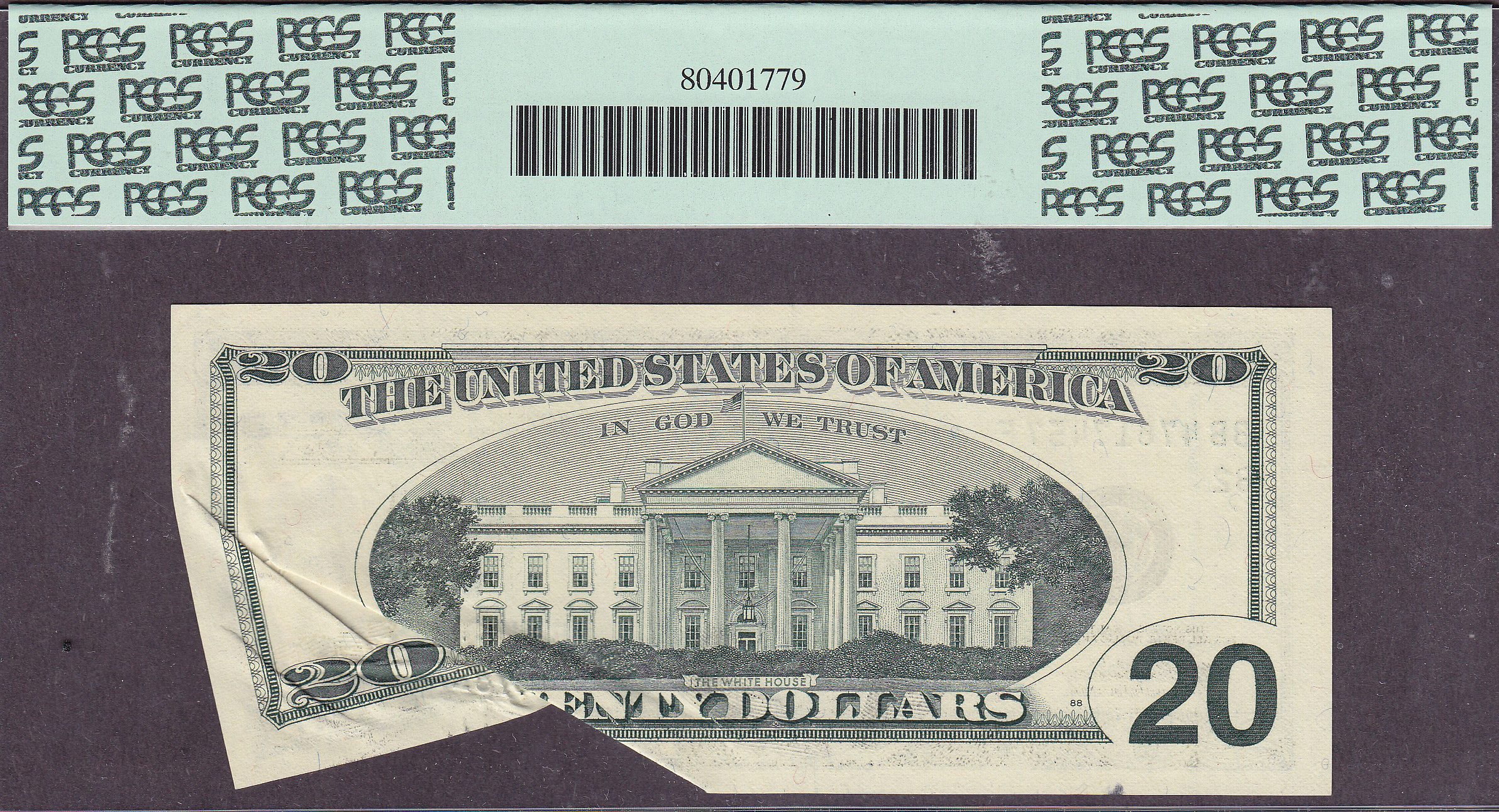 It got crushed! This is one of the most dramatic errors I own. It is a 1999 $20 FRN with the crushed serial number of BB47817457F. What make this so special is the note was crushed before the third printing and the serial numbers printed over the top of the crushed bill. I have never seen this before and I have bought and sold thousands of large size and small size errors but his is the first one of this type I have owned. I bought this note in 2002 from Steve Sullivan, author of the book on small size error notes. Its totally dramatic with lots of eye appeal as a dramatic error. It is in a PCGS-64 holder. I don not care what PCGS says this note is totaly original in every way as you will see when you get it.