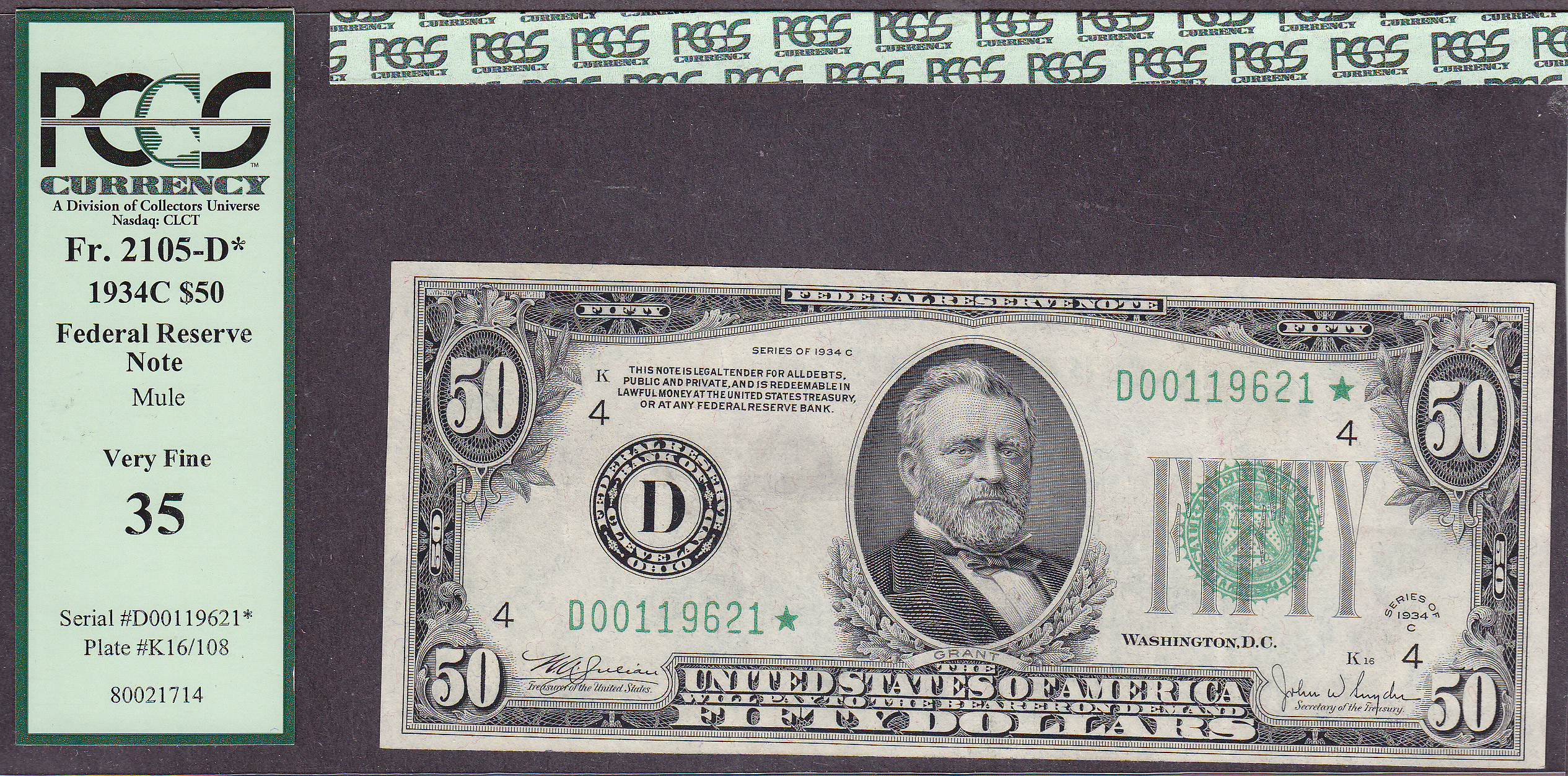 Here is a 1934 $50 FRN star from the Cleveland district in a PCGS VF-35 holder. This 1934C* is a very rare fine, check it out!