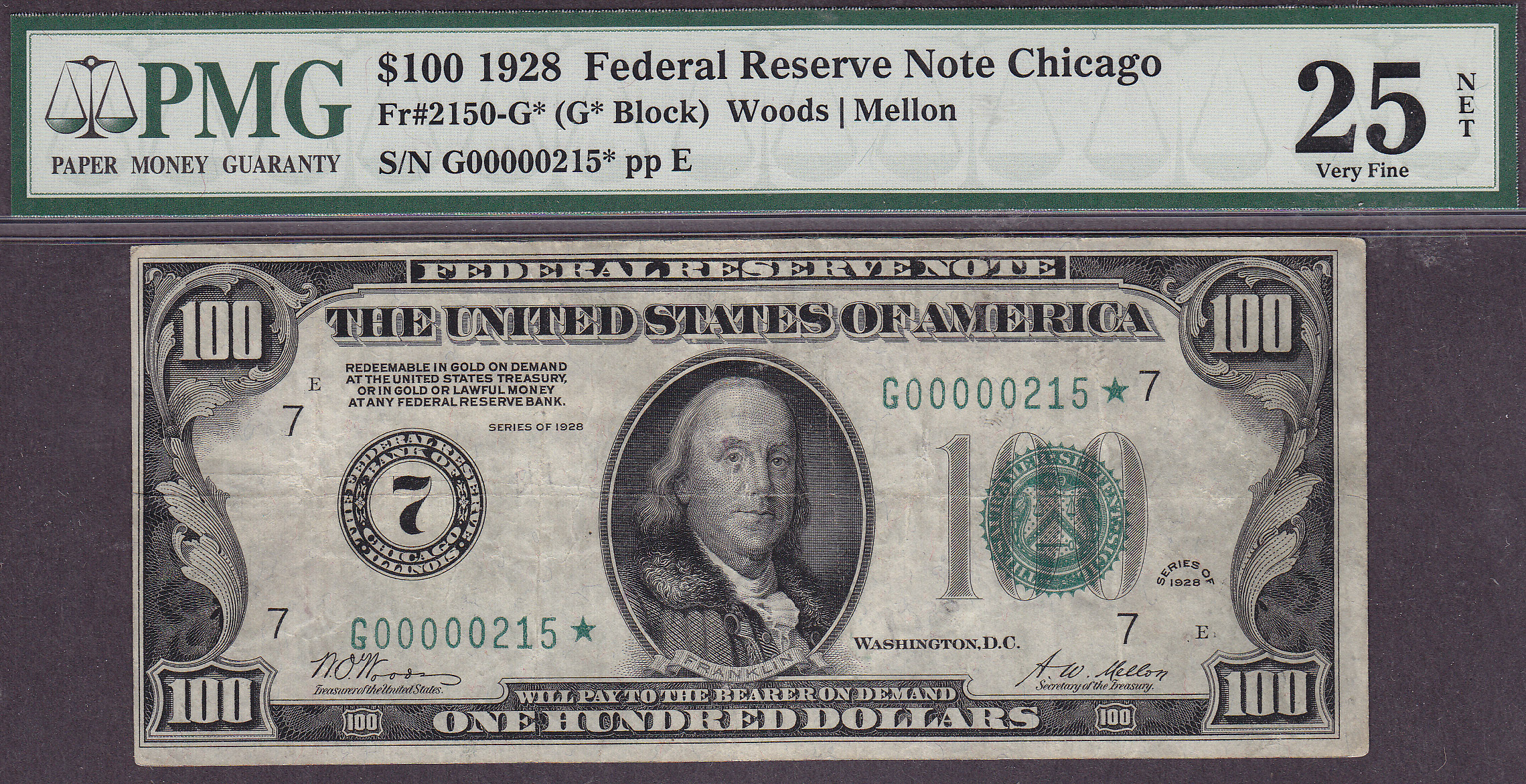 Fr.-2150* 1928 $100 Chicago FRN Ser. G00000215* PMG-25 net