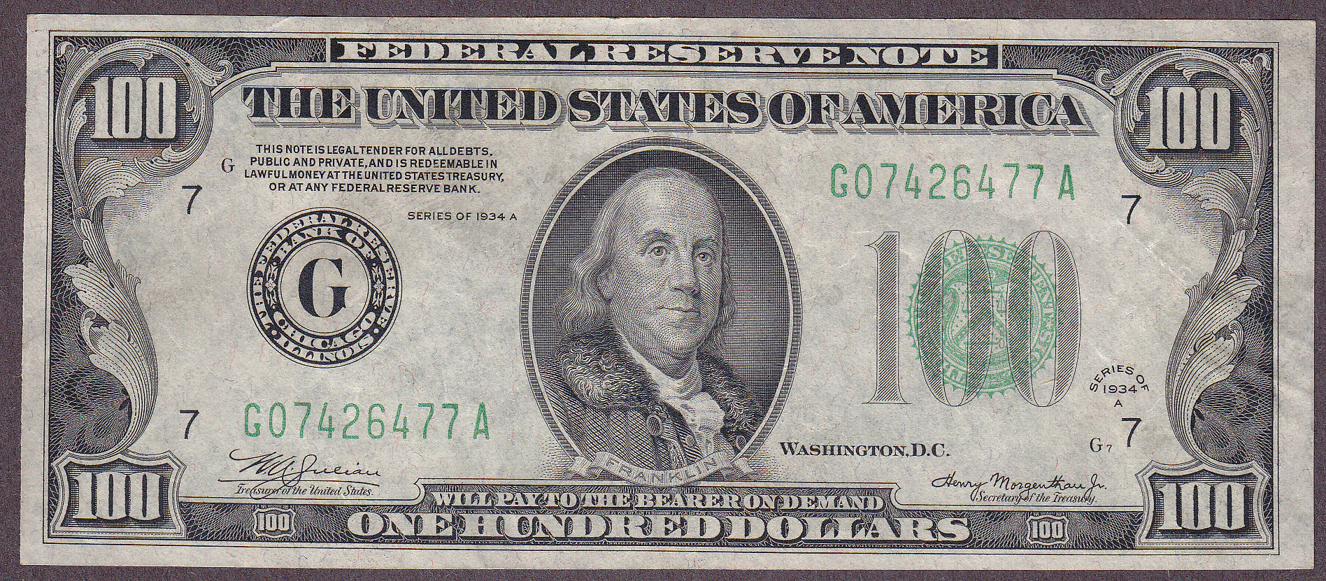 Fr.-2153 1934-A $100 Chicago FRN Mule Ser. G07426477A Raw