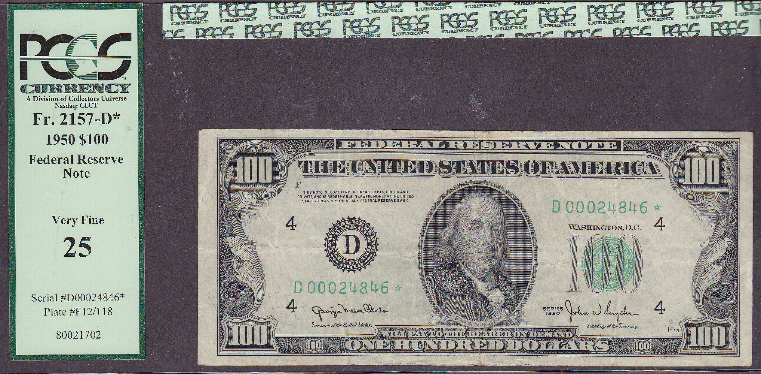 Here we have a 1950 $100 Cleveland Star in a PCGS-25 holder.