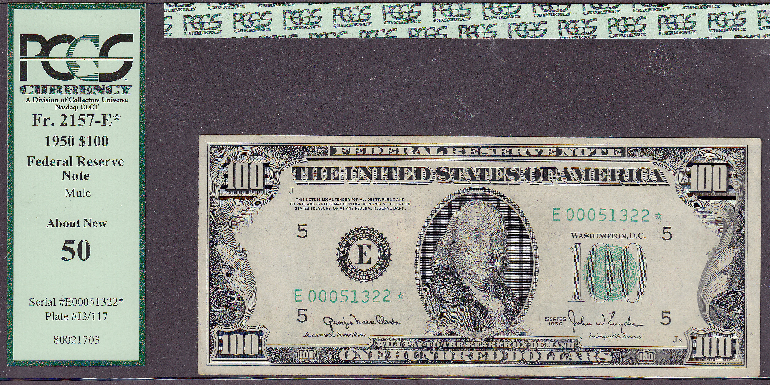 Discovery Note! This 1950 $100 Richmond star never existed. There is no record in any book that it was ever printed or issued. Buddy here it is, a Discovery Note. Be the first one on your block to own one! The PCGS holder says it is a Mule Star Note, it is not a Mule Star Note. The back plate # is 117. The mule star back plate number is 113 or lower. This note has been graded as a PCGS-50 and the serial number of the note that does not exist is E00051322*. Check the scans for yourself. Another rare star note form the Jhon E Cash Collection. The ends of all the PCGS holders have been cut to fit my book. I guarantee all PCGS grades 100%. Of course the grade really does not matter....it is the only one!