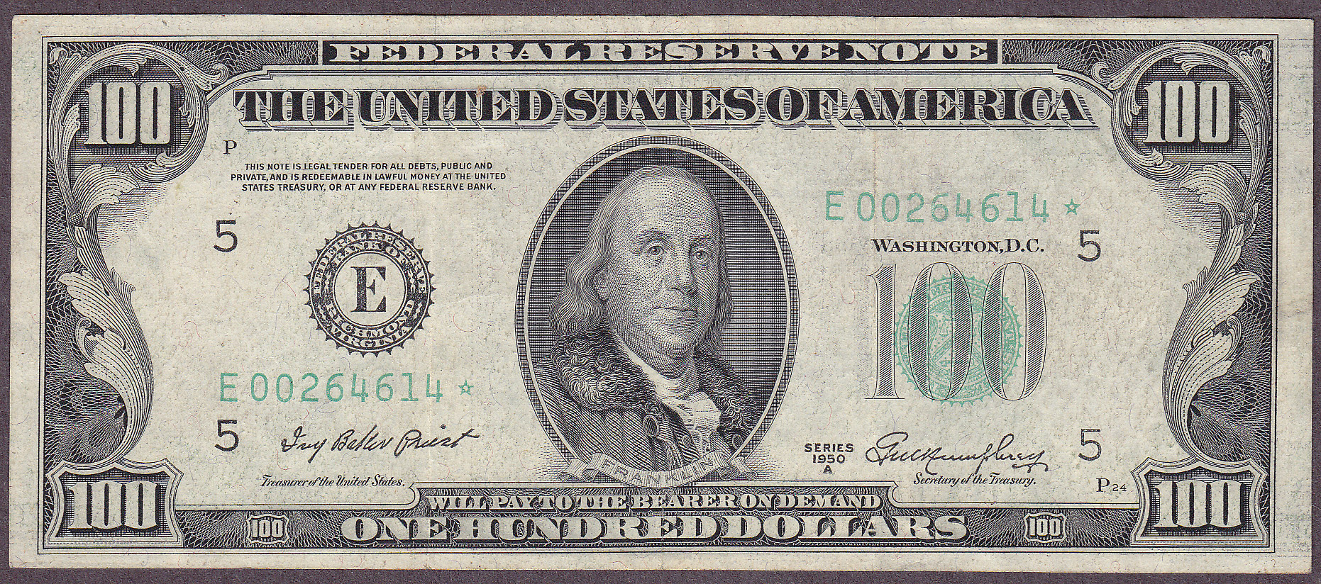 Fr.-2158* 1950-A $100 Richmond FRN Ser. E00264614* Fine++