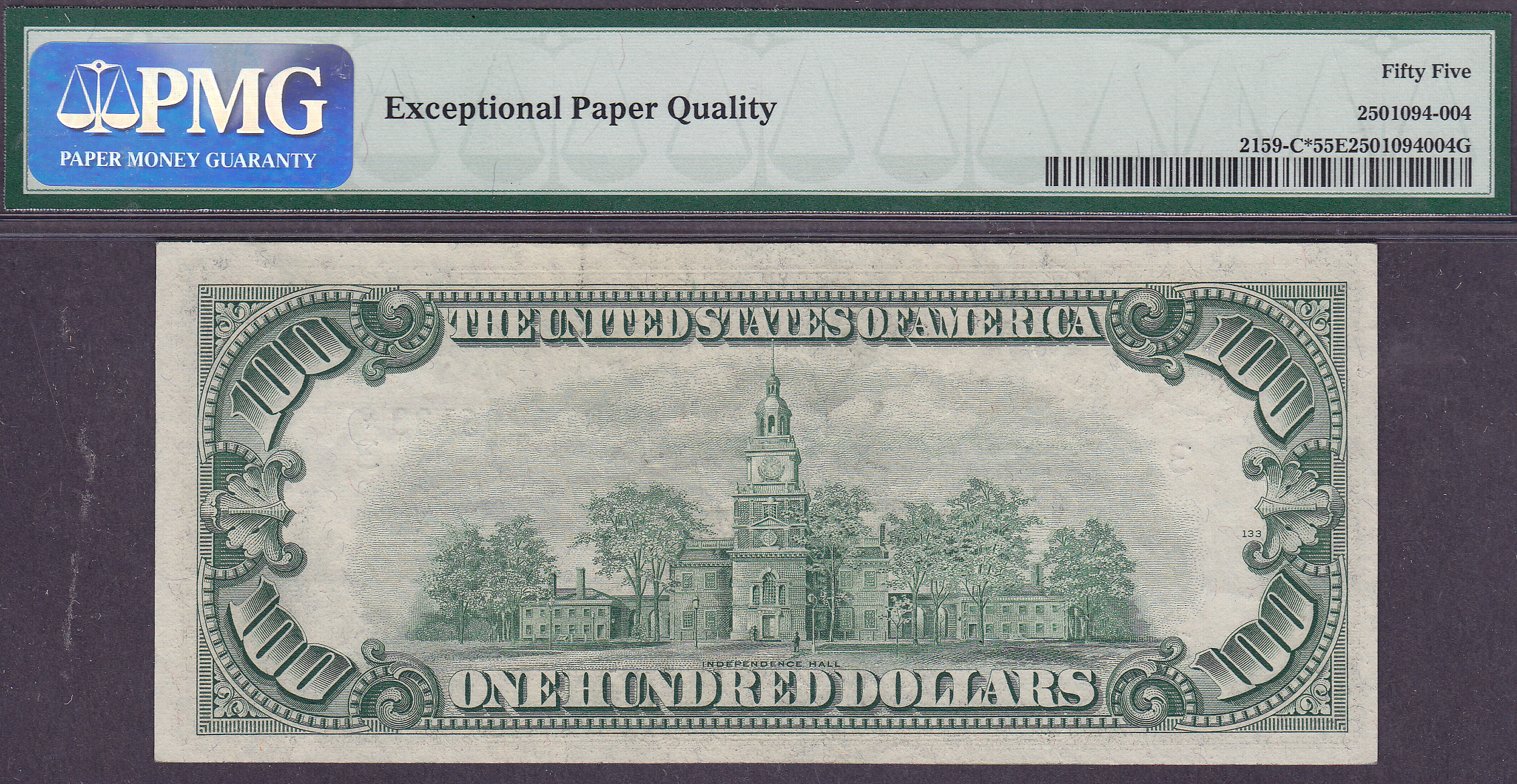 Fr.-2159* 1950-B $100 Philadelphia Ser. C00296133* PMG AU-55 EPQ