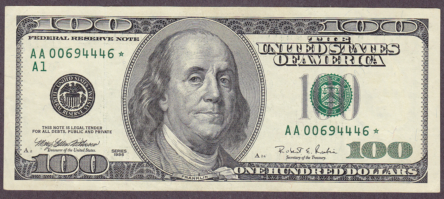 Fr.-2176* 1996 $100 Boston FRN Ser. AA00694446* Raw