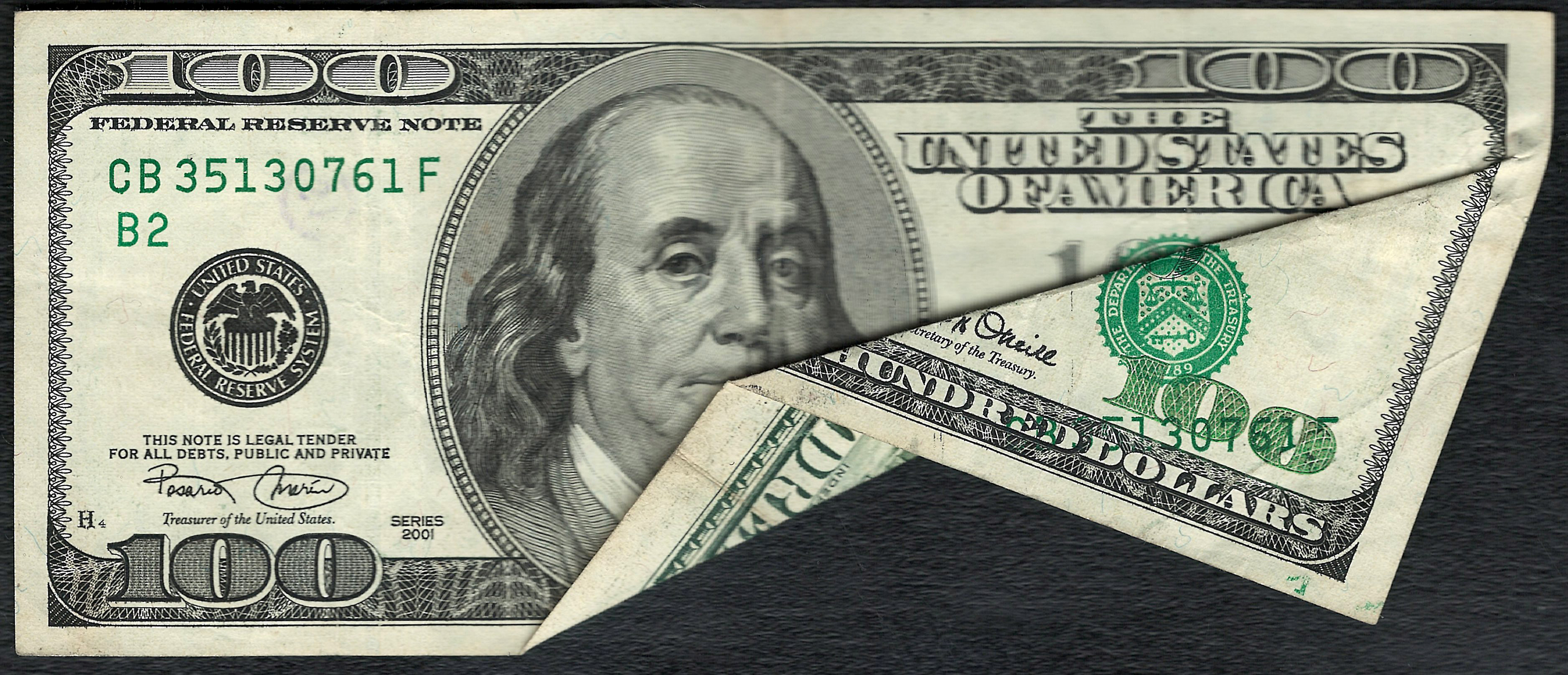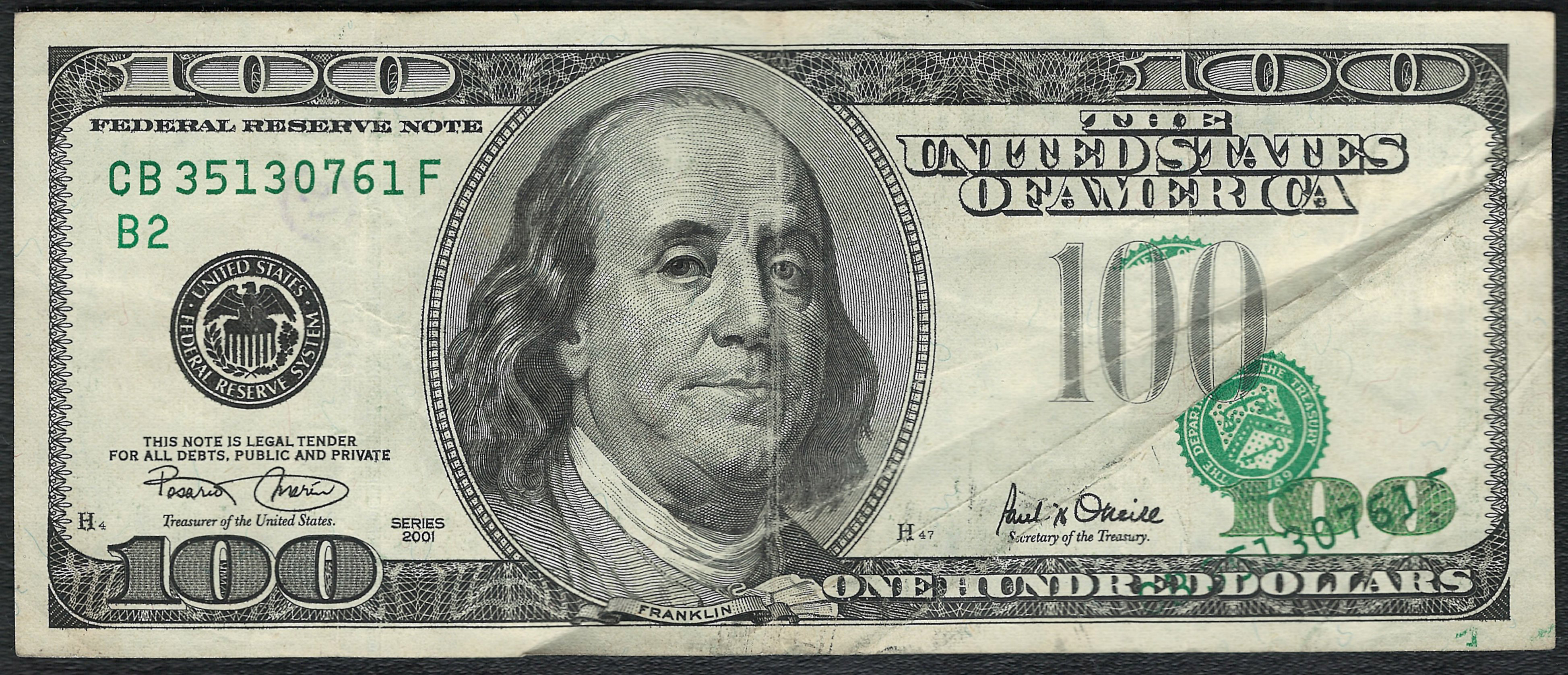 Fr.-2177 2001 $100 Error Note Fold Ser. BCB35130761F Raw