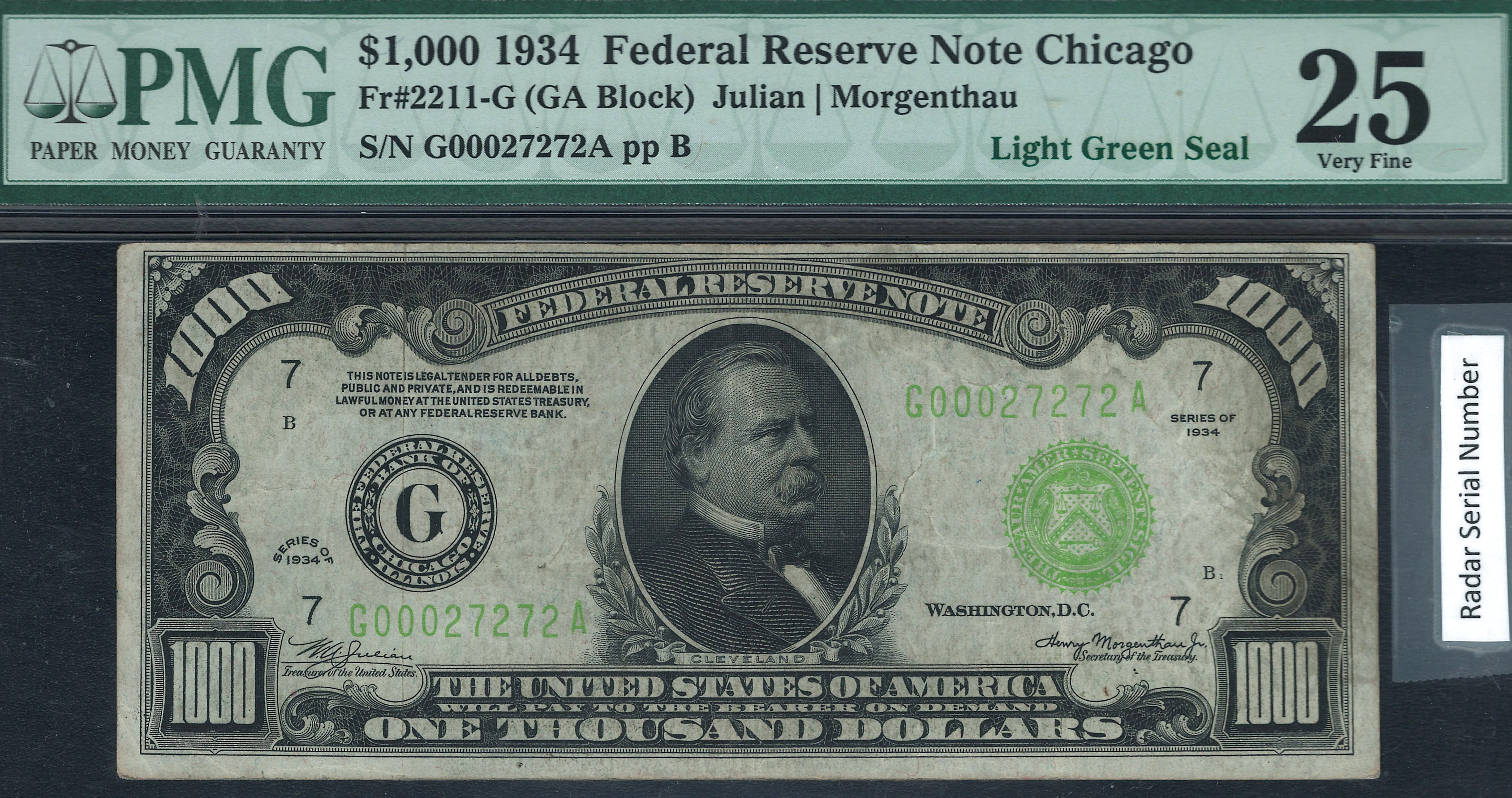 Fr.-2211G 1934 $1,000 Chicago FRN Ser. G00027272A PMG-25