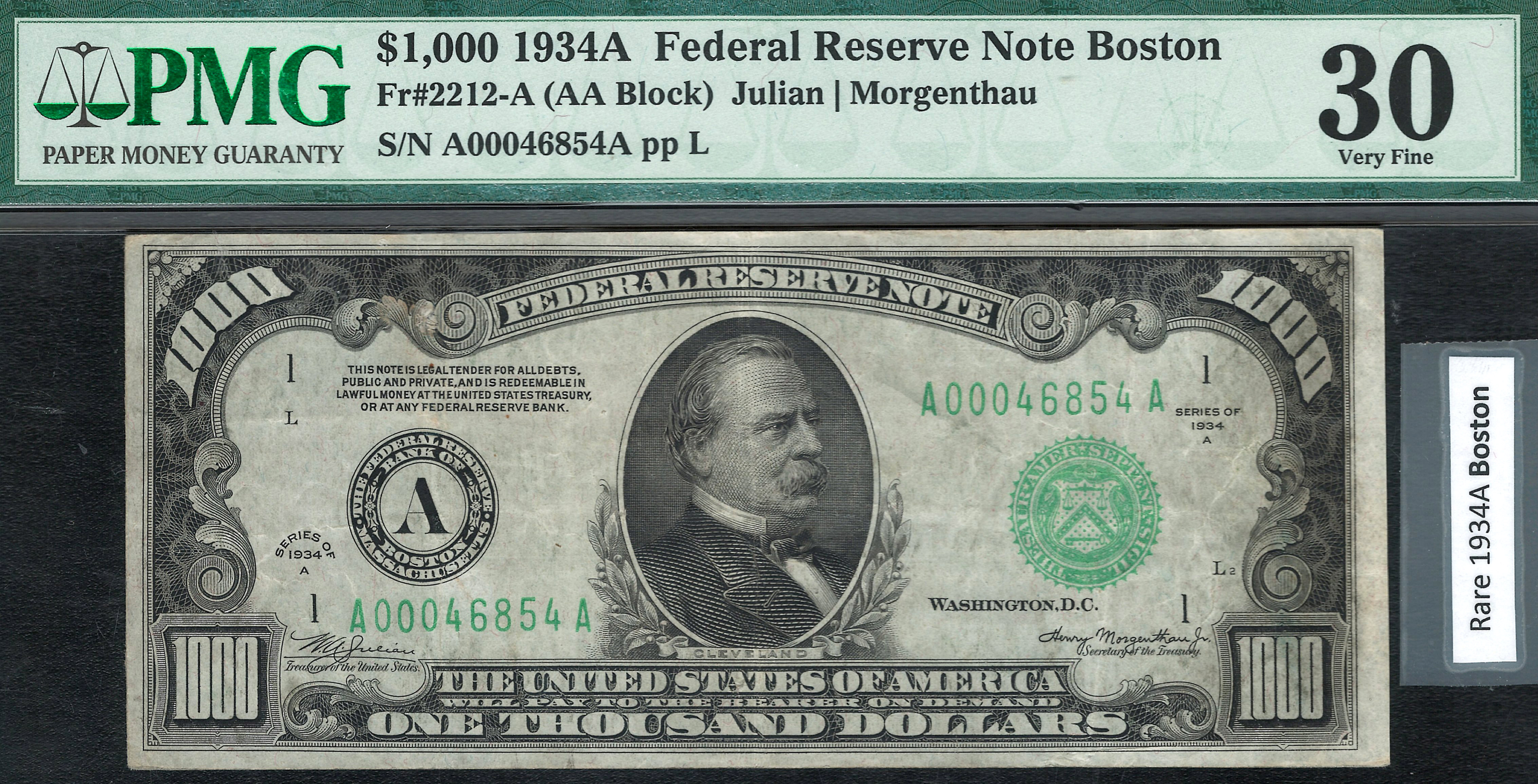 Fr.-2212 1934 $1,000 Boston FRN Ser. A00046854A PMG-30