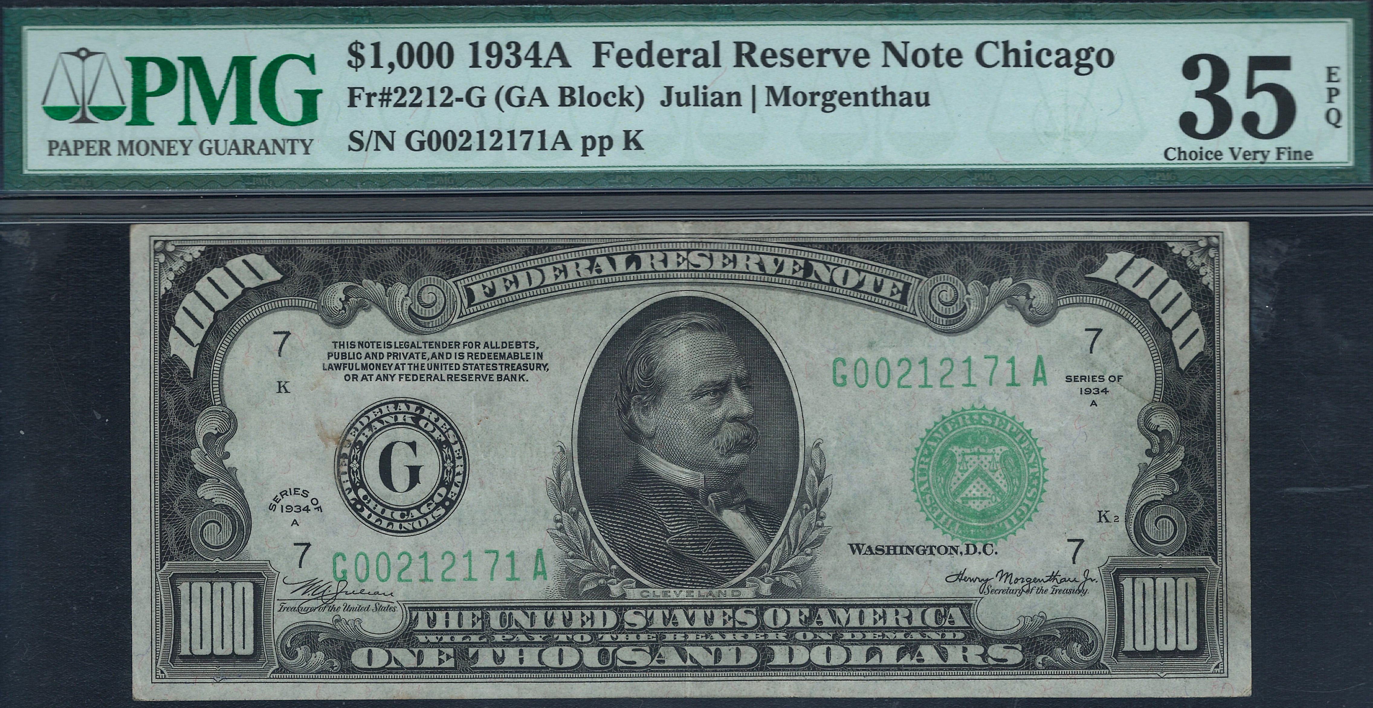 Fr.-2212 1934A $1,000 Chicago FRN Ser. G00212171A PMG-35EPQ