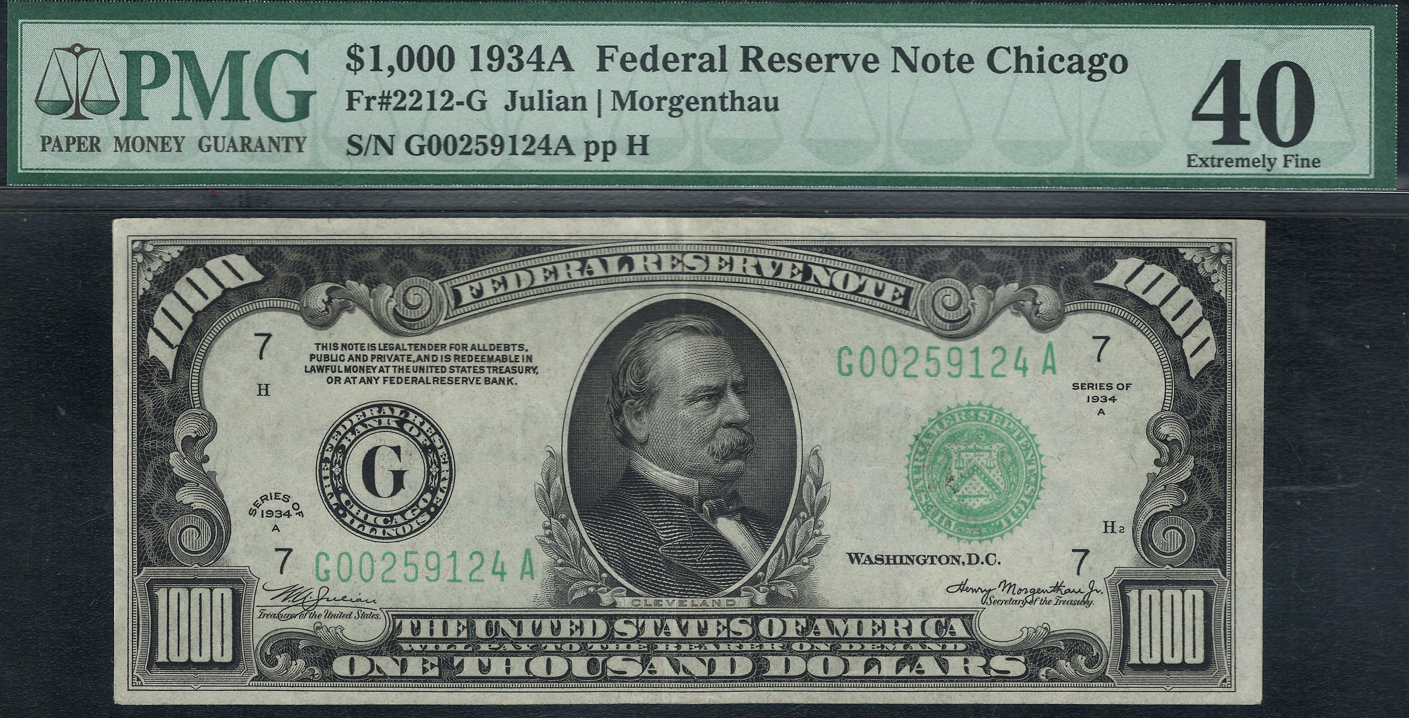 Fr.-2212 1934A $1,000 Chicago FRN Ser. G00259124A PMG-40