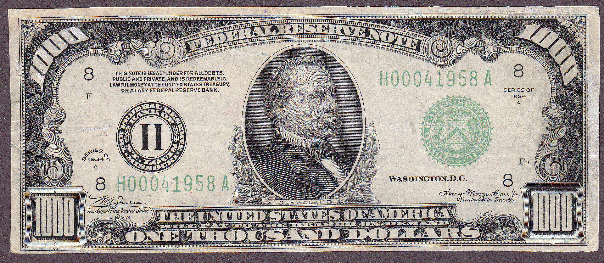 Fr.-2212 1934 $1,000 St. Louis FRN Ser. H00041958A Raw