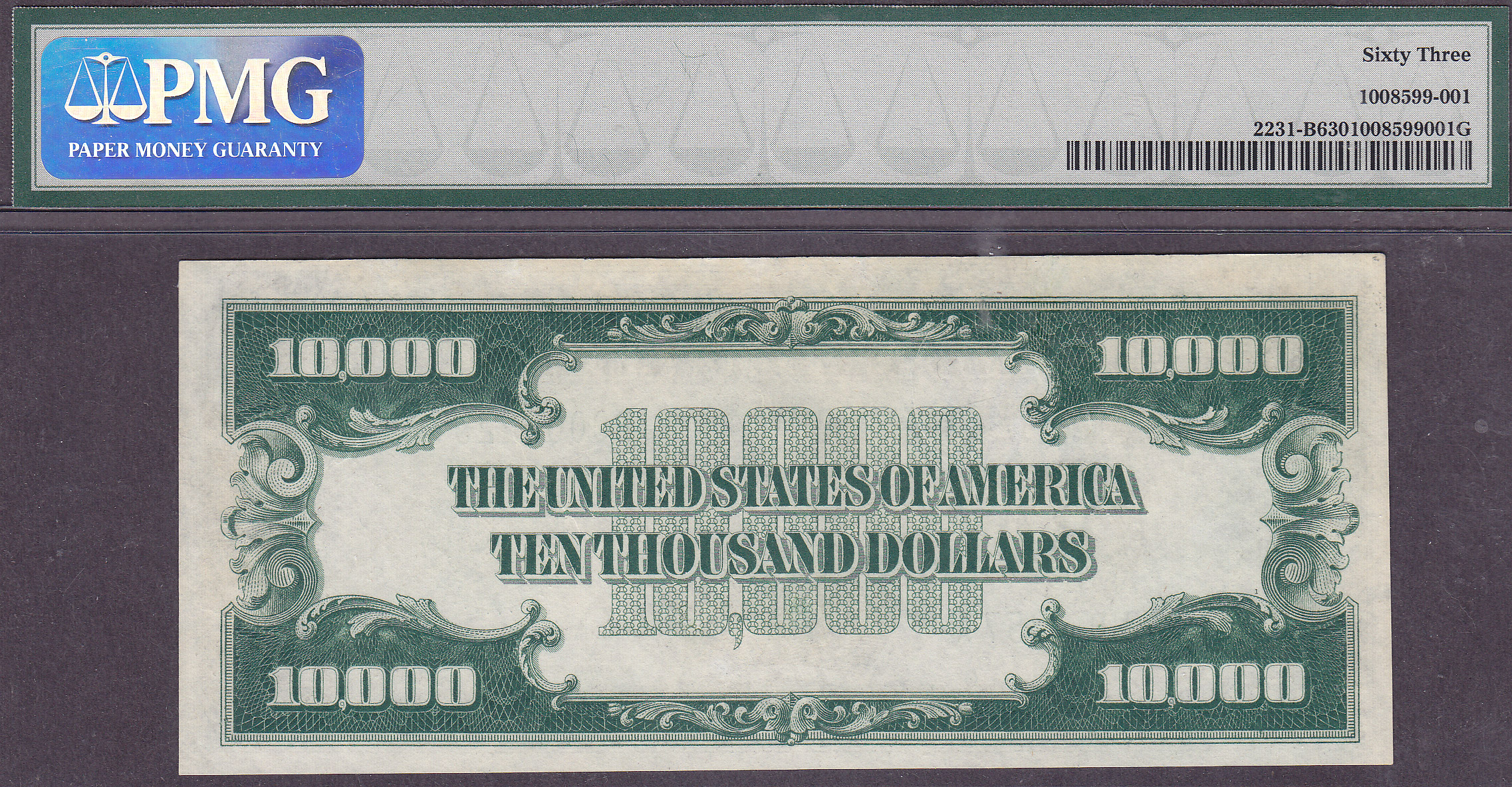 Each and every $5,000 and $10,000 bills come in a custom made cherry wood box with a “Certificate of Authenticity” that includes the front and back photos of the note on the COA. It is great for insurance purposes.
