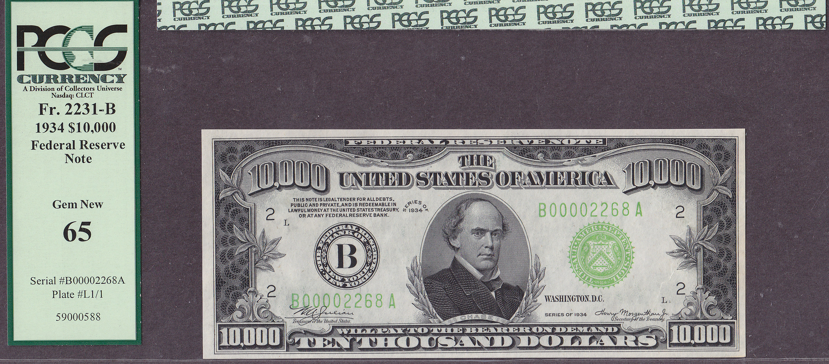 Fr.-2231 1934 $10,000 New York FRN Ser. B00002268 PCGS Gem-65