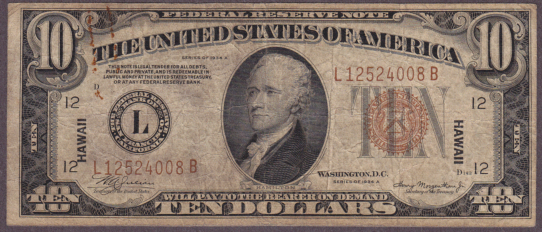This 1934 #10 Hawaii note is definately priced to sell.
