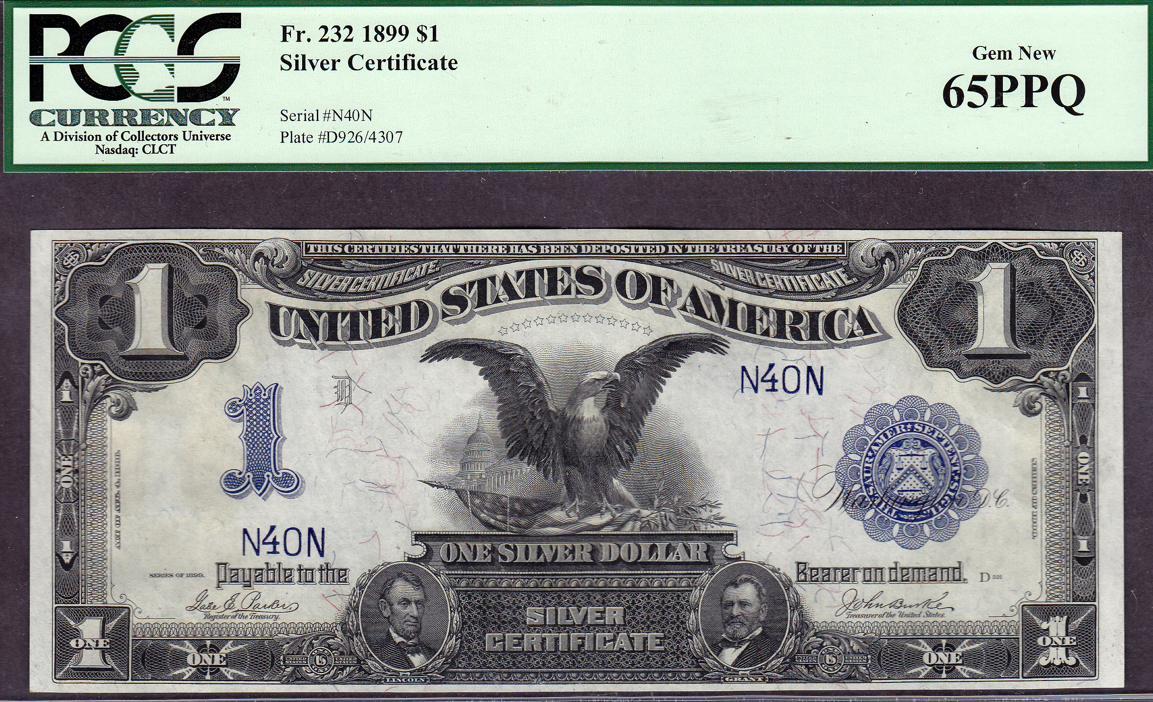 Fr.-236 1899 $1 Black Eagle PCGS-65PPQ Serial # N40N