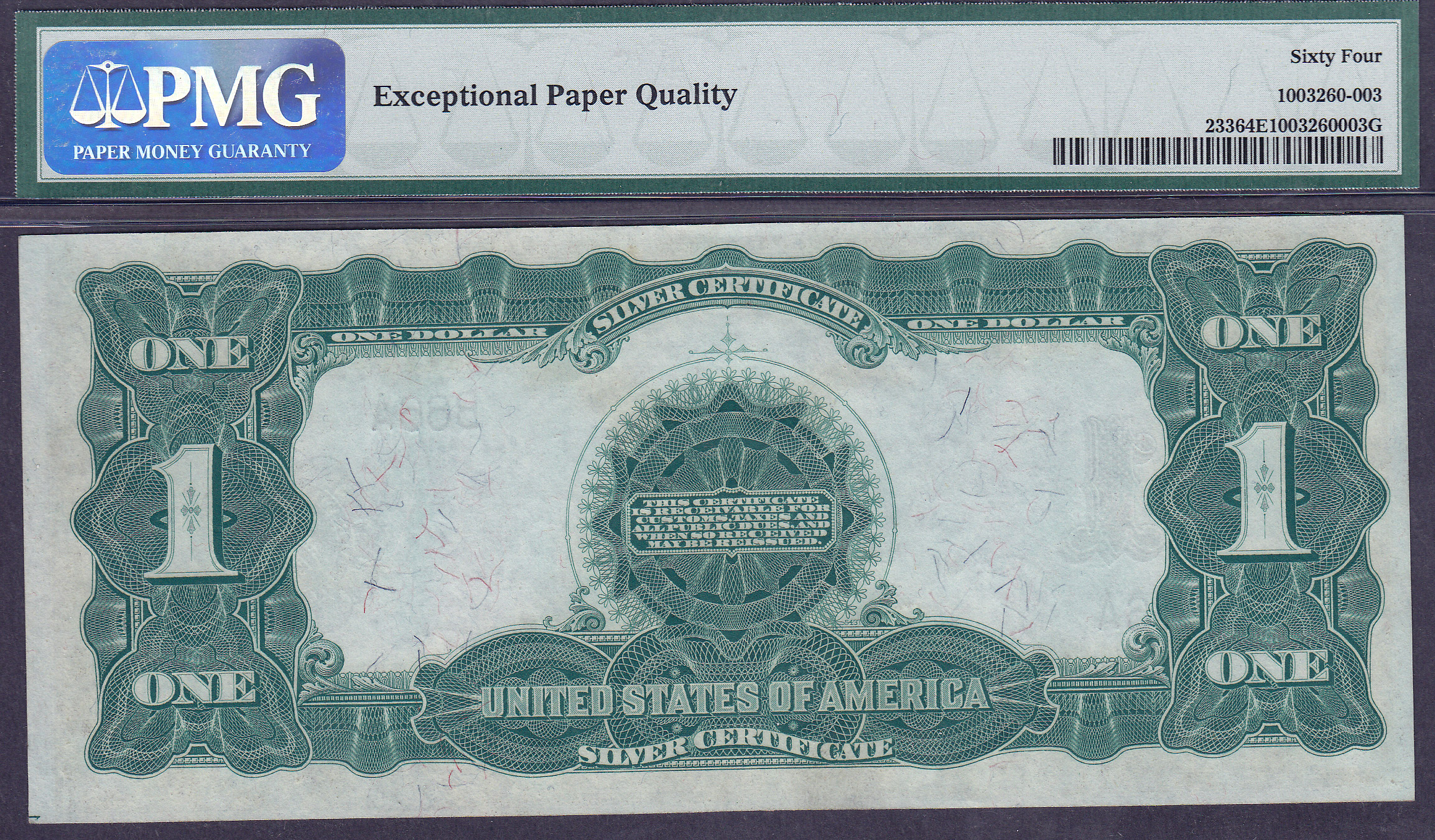 1899 $1 Black Eagle with serial number B66A. The devil's number! PMG-64EPQ. A neat note with a real fancy serial number. Almost GEM. Anyone turning 66 or born in 1966 would appreciate this note.