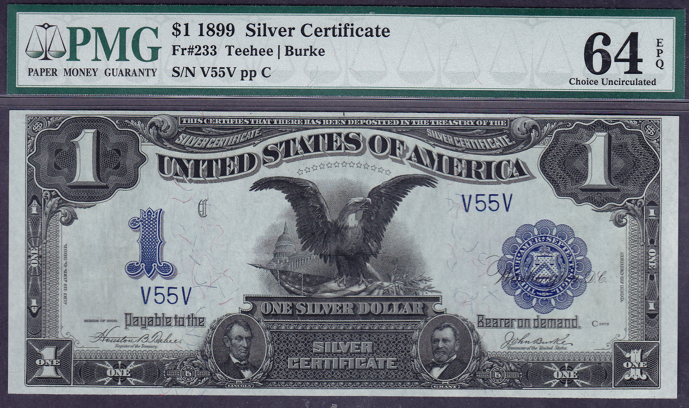 Fr.-233 1899 $1 Black Eagle PMG-64EPQ Serial # V55V