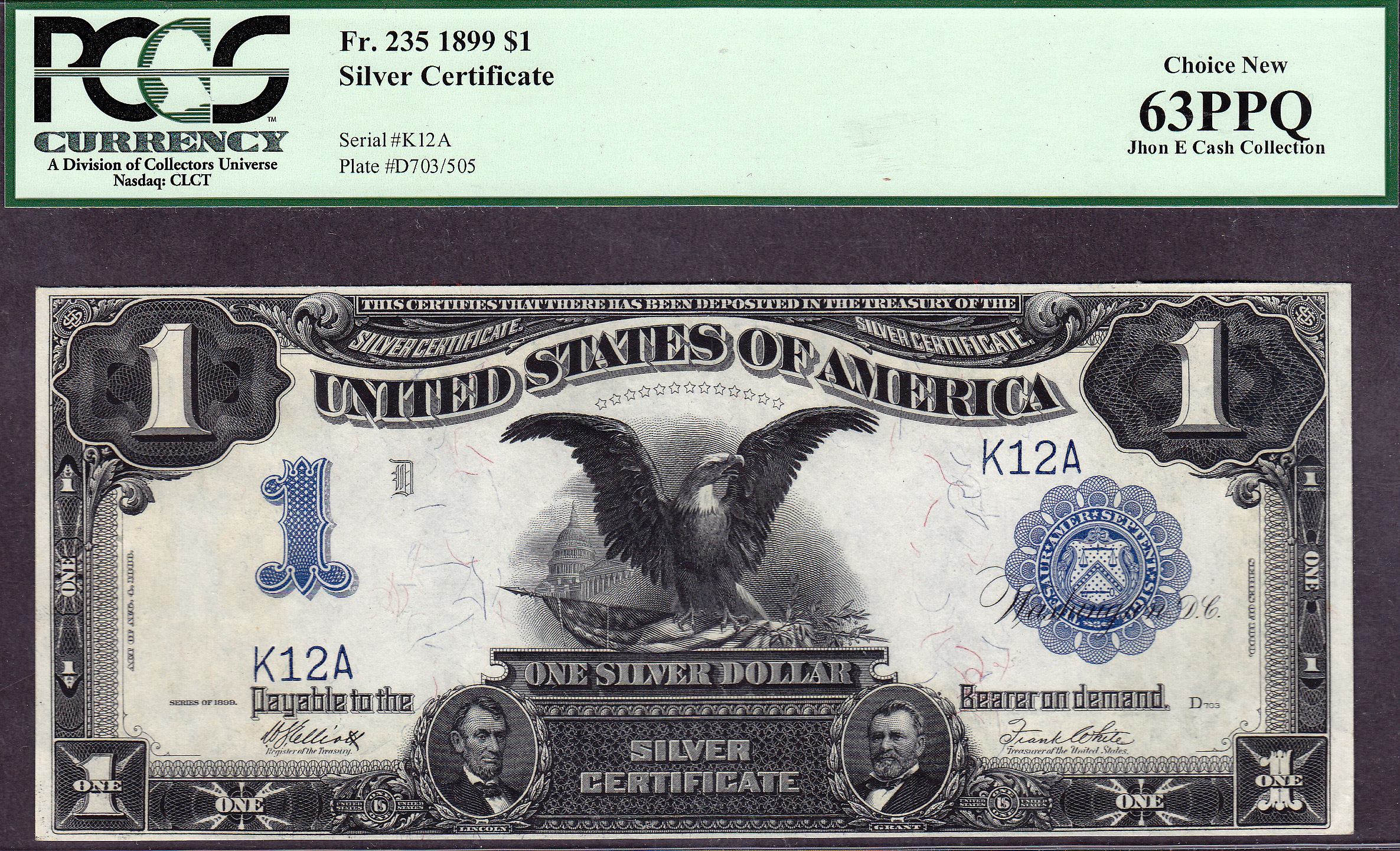 THIS IS A VERY RARE LOW NUMBER FR-235. IT IS A TWO-DIGIT SERIAL NUMBER K12A. IT HAS BEEN CERTIFIED BY PCGS AS A CRISP UNCIRCULATED-63PPQ.