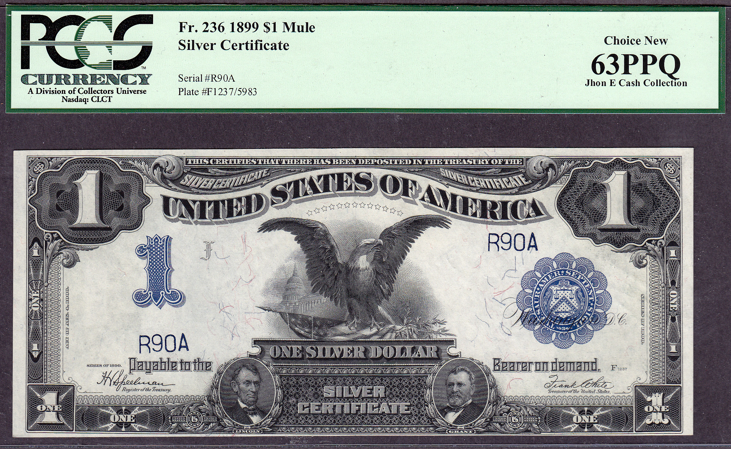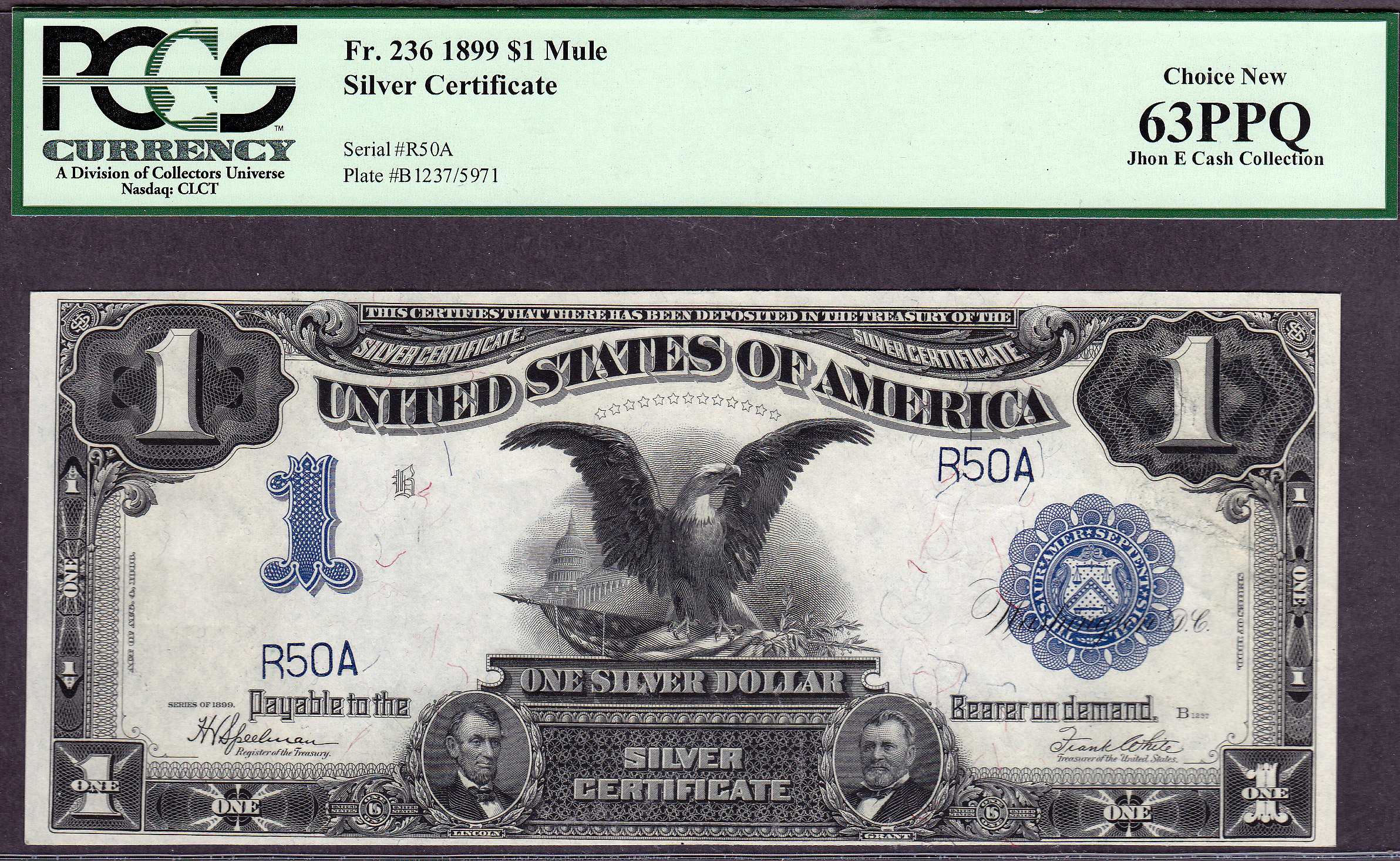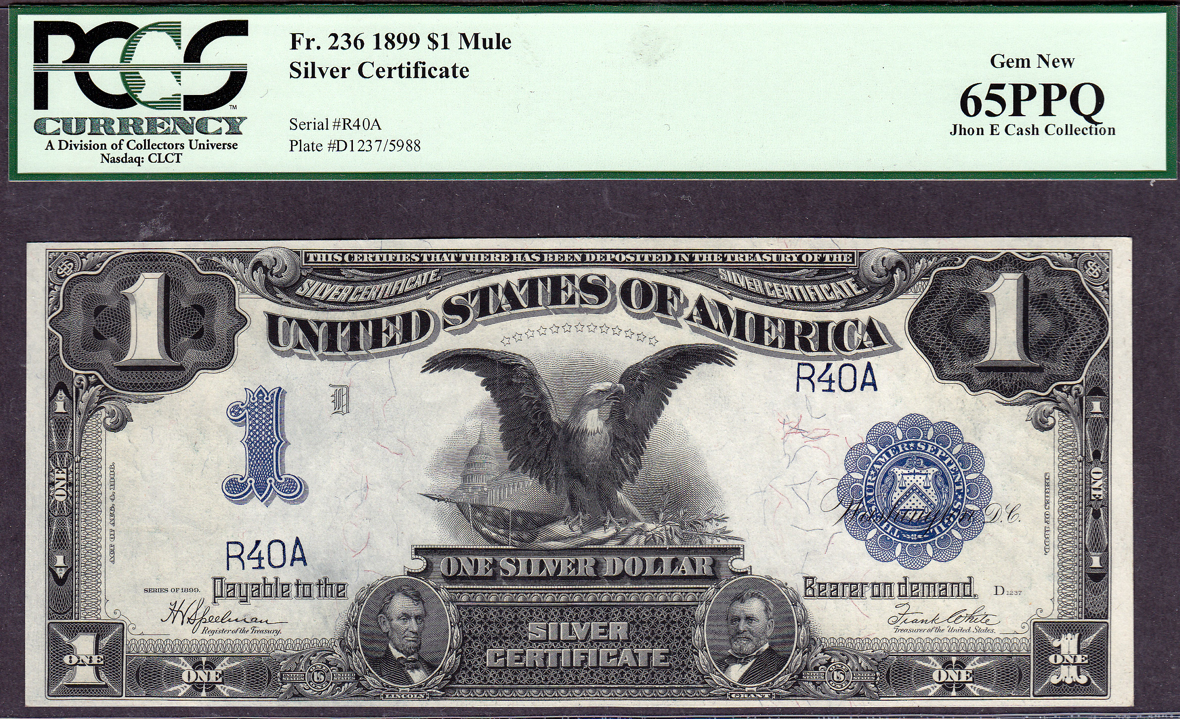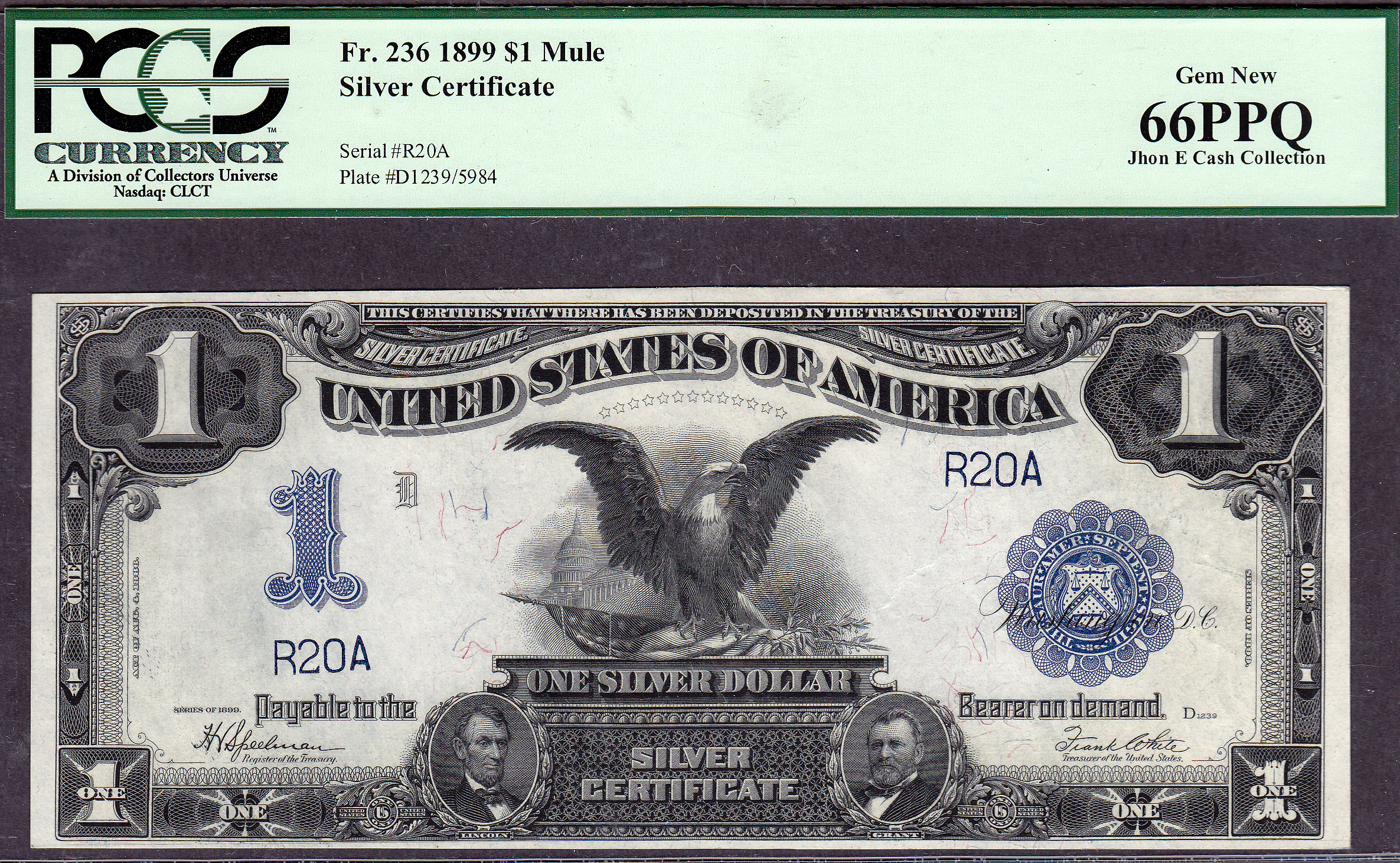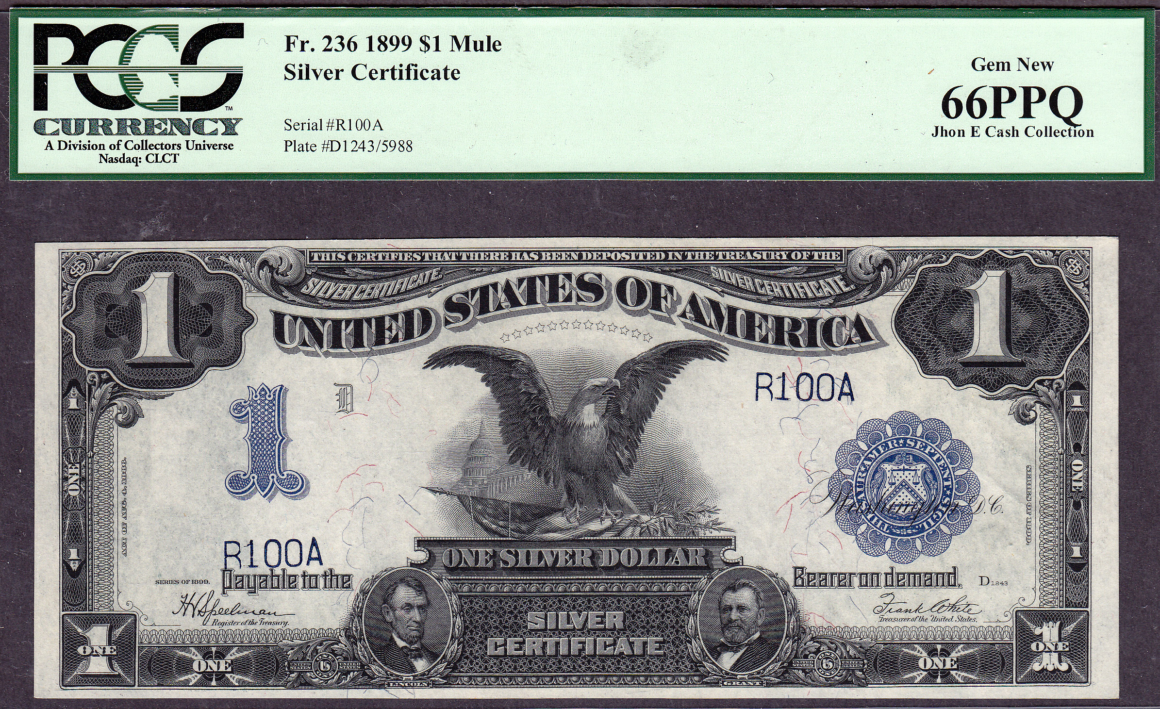 You gotta see this "Presentation Set" of 10 Black Eagle Silver Certificates. The serial numbers are R10A to R100A. They are all graded from GEM PCGS-63PPQ to 66PPQ. This 10-piece set is part of the famous "Zollie Kelman" Black Eagle Collection. This is a neat set of ten consecutive serialized numbered Fr.-236 Black Eagles. The serial numbers are R10A to R100A When you go to view this note, all ten of the Black Eagles will be displayed for your viewing. This set of Black Eagles are from the famous "Zollie Kelman" Black Eagle Collection that I purchased from Harry Jones at the Memphis Show in 2005. The Zollie Kelman Collection consisted of 86 Black Eagles that come in various serialized sets. These Presentation Notes were generally issued to Heads of State or Foreign Dignitaries as gifts by the US Treasury Department on behalf of the United States government. These Black eagles were never released to the general public for circulation. Zollie Kelman was the 3rd owner of this Black Eagle collection and now Jhon E Cash is the fourth owner. These are very special serialized sets and I will not break them up. You will find additional sets of these notes through the website, go view them as they are impressive. Thanks and enjoy them...as I have for so many years. Jhon E Cash