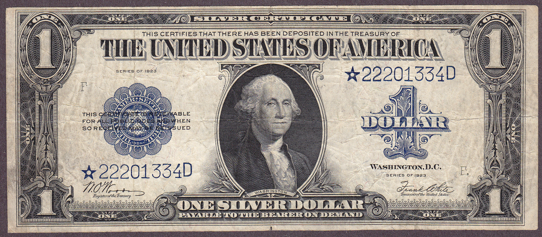 Fr.-238 1923 $1 Silver Certificate Ser. 22201334D Raw