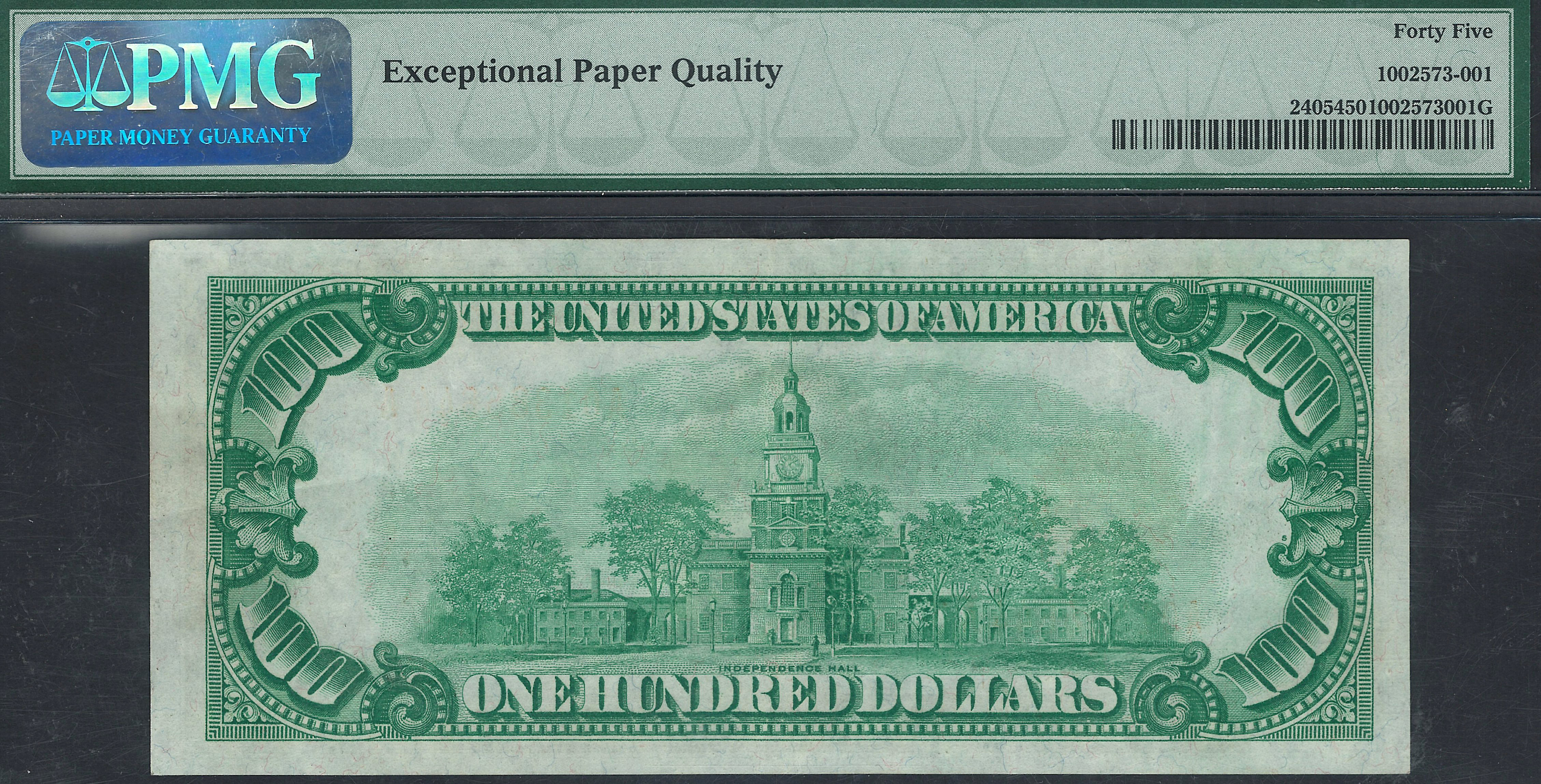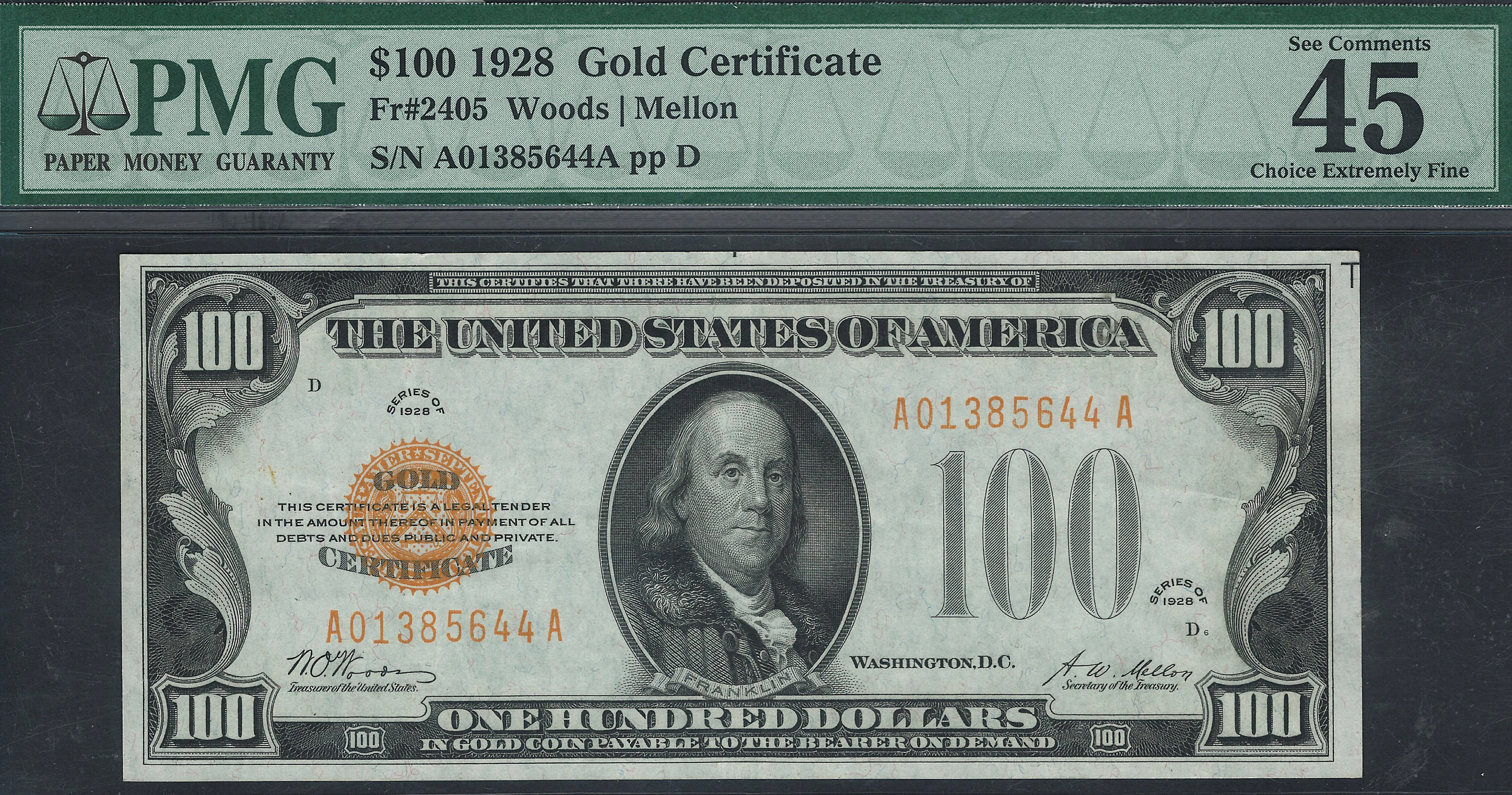 Fr.-2405 1928 $100 Gold Certificate Ser. A01385644A PMG XF-45EPQ