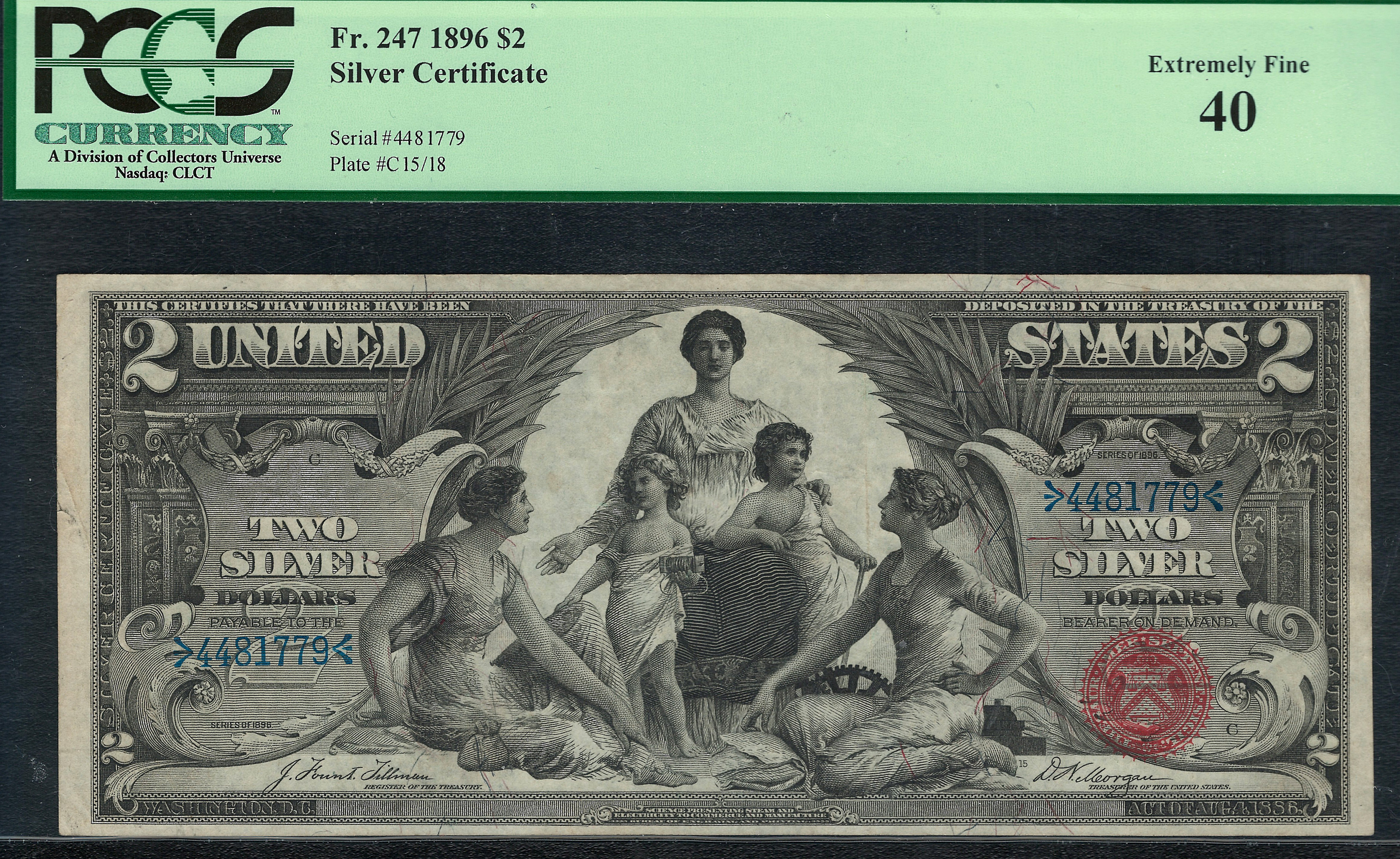 Fr.-247 1896 $2 Silver Certificate Ser. 4481779 PMG-40