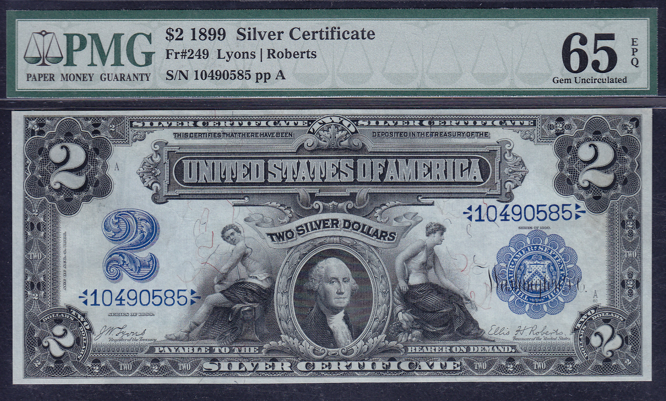 Fr.-249 1899 $2 Silver Certificate Ser. # 10490585 PMG-65EPQ